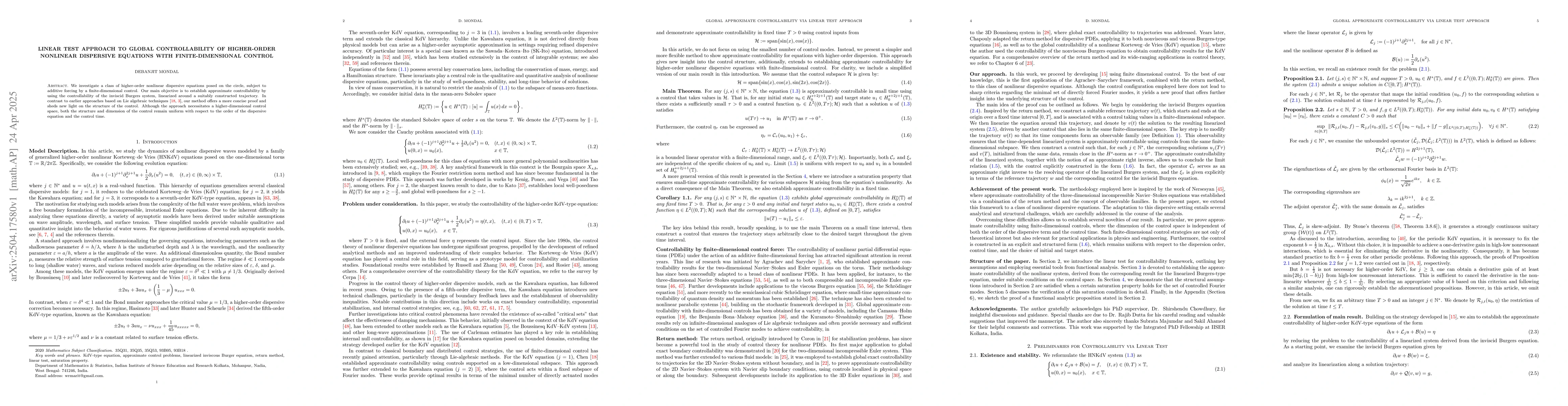 The paper introduces a linear test approach to prove approximate controllability for higher-order nonlinear dispersive equations, simplifying earlier proofs and providing uniformity in control structure and dimension.