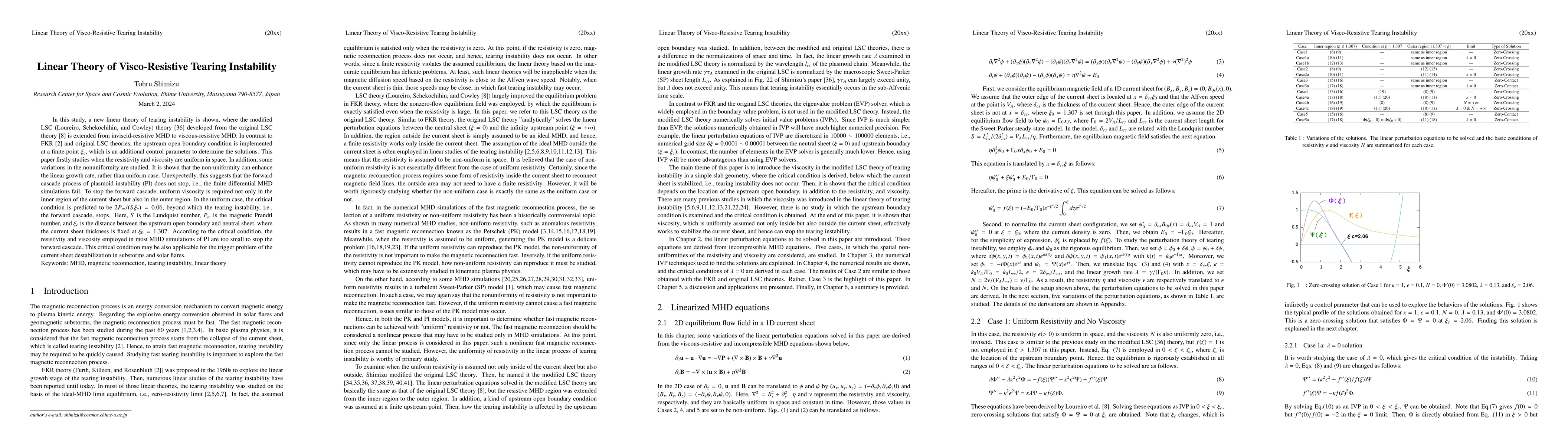 This paper introduces a new linear theory for visco-resistive tearing instability extending the modified LSC theory, showing that non-uniform resistivity and viscosity enhance linear growth rates. The critical condition $2P_m/(S \xi_{c})=0.06$ is identified to halt the forward cascade, indicating current MHD simulations' resistivity and viscosity levels are insufficient.
