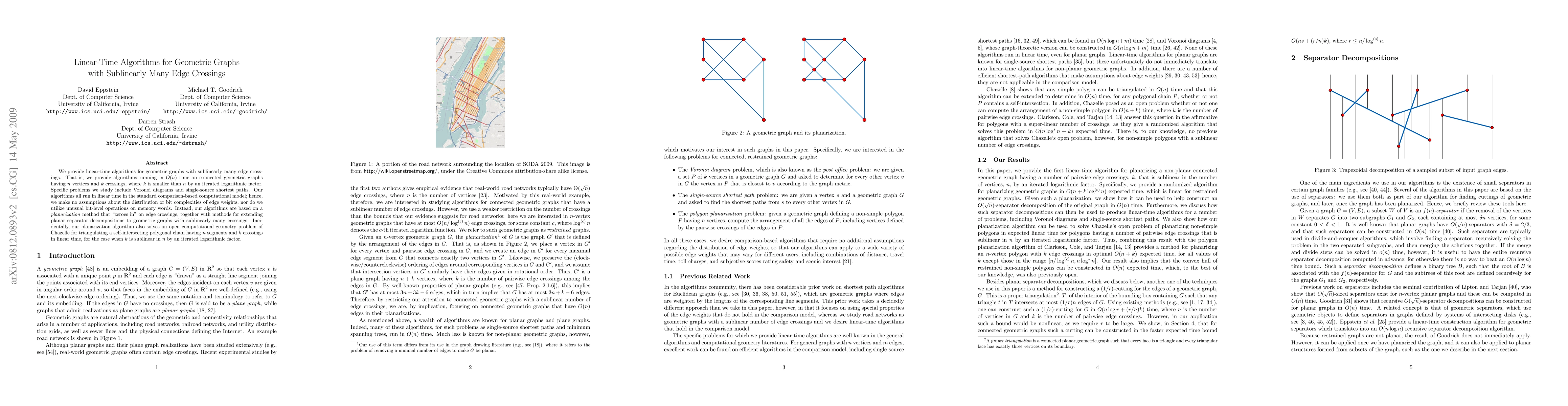 Researchers have created linear-time algorithms for solving problems in geometric graphs with a small number of edge crossings, improving computational efficiency and solving long-standing open problems in the field.