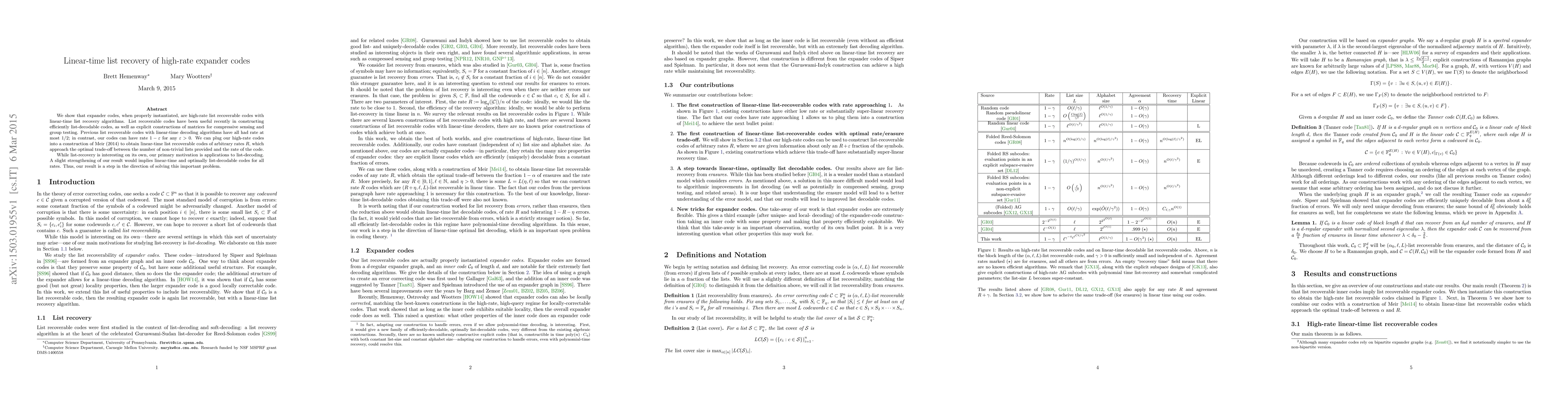 This paper demonstrates high-rate list recoverable expander codes with linear-time recovery algorithms, surpassing previous rate limits of 1/2. These codes can achieve rates of $1 - \epsilon$ and are pivotal for constructing efficient list-decodable codes and applications in compressive sensing.