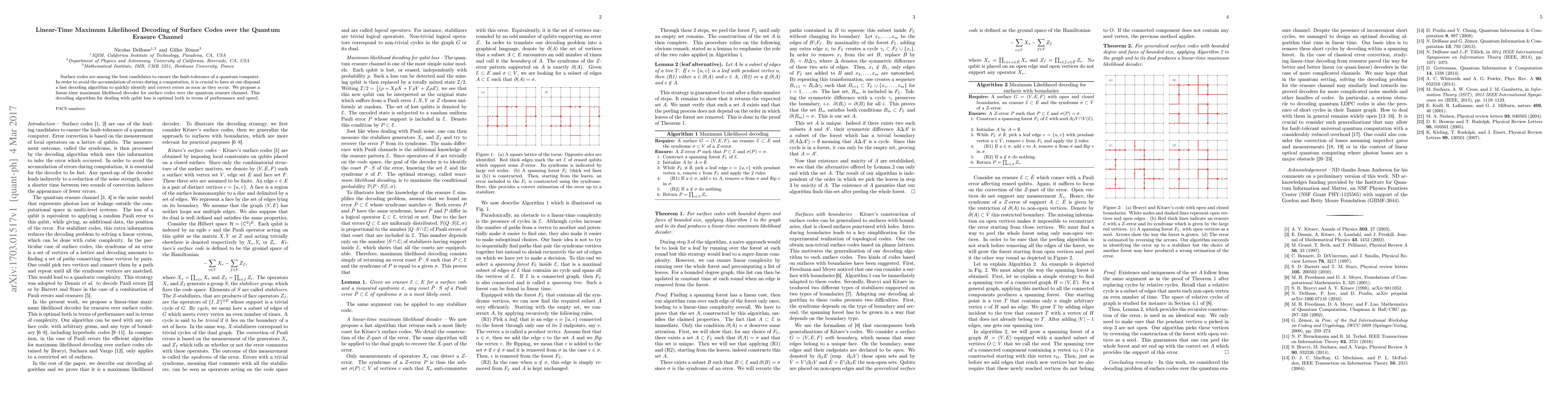 This paper proposes a linear-time maximum likelihood decoder for surface codes over the quantum erasure channel, aiming to quickly identify and correct errors as they occur, ensuring optimal performance and speed for fault-tolerant quantum computing.
