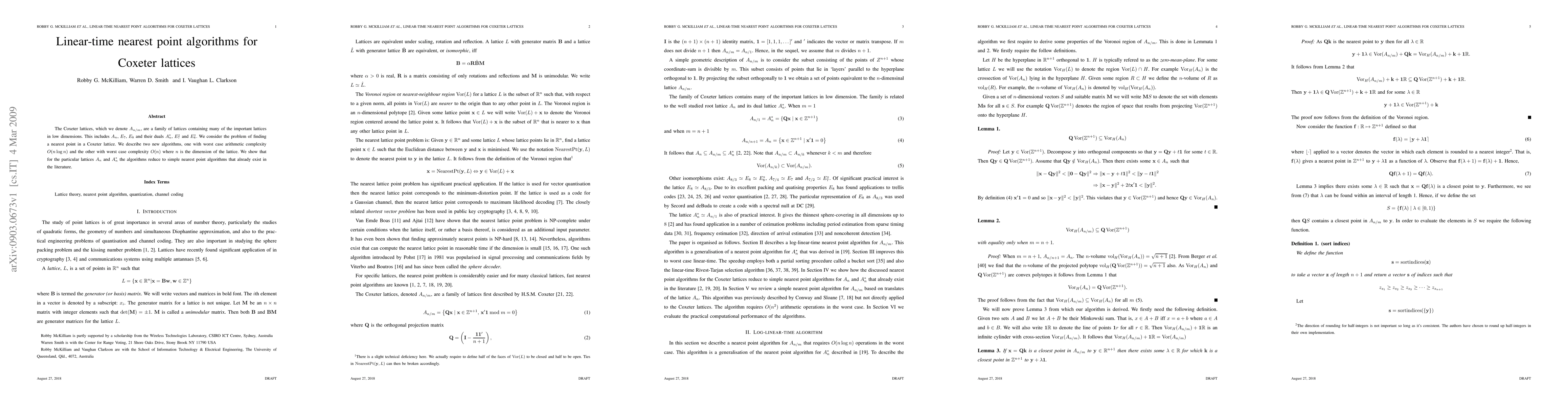The Coxeter lattices, which we denote $A_{n/m}$, are a family of lattices containing many of the important lattices in low dimensions. This includes $A_n$, $E_7$, $E_8$ and their duals $A_n^*$, $E_7^*$ and $E_8^*$. We consider the problem of finding a nearest point in a Coxeter lattice. We describe two new algorithms, one with worst case arithmetic complexity $O(n\log{n})$ and the other with worst case complexity O(n) where $n$ is the dimension of the lattice. We show that for the particular lattices $A_n$ and $A_n^*$ the algorithms reduce to simple nearest point algorithms that already exist in the literature.