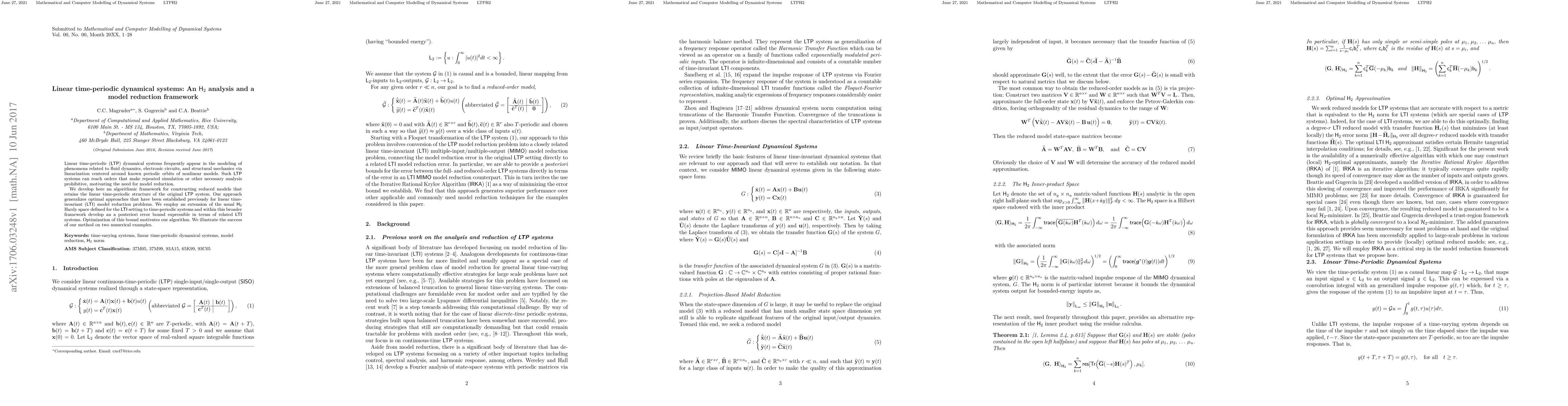 This paper develops an algorithmic framework for reducing the complexity of linear time-periodic dynamical systems while preserving their structure. It extends H2 analysis to time-periodic systems and provides an a posteriori error bound, guiding the reduction process and demonstrating effectiveness through numerical examples.