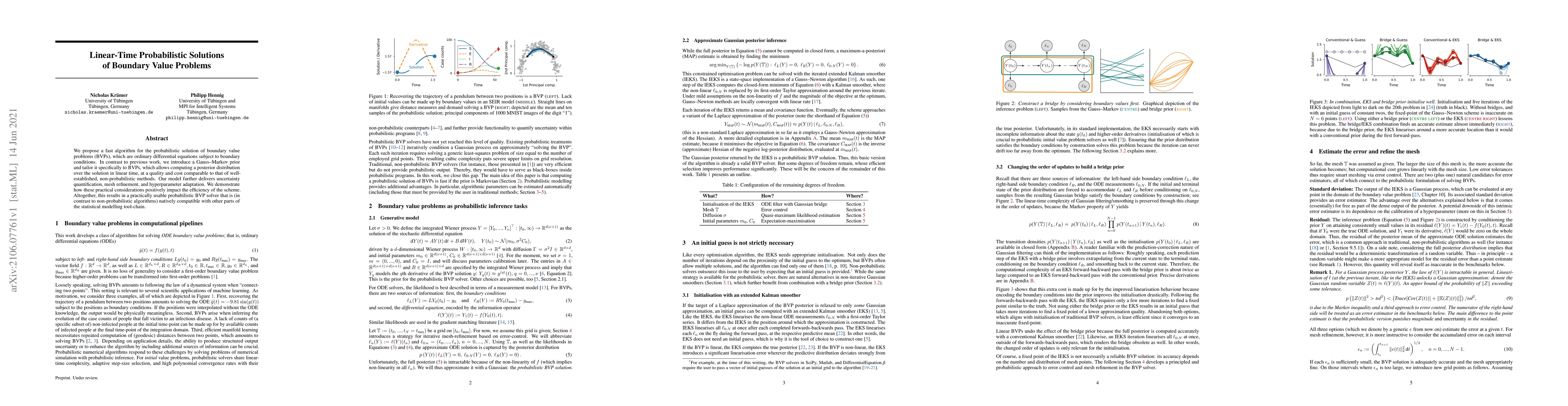 We propose a fast algorithm for the probabilistic solution of boundary value problems (BVPs), which are ordinary differential equations subject to boundary conditions. In contrast to previous work, we introduce a Gauss--Markov prior and tailor it specifically to BVPs, which allows computing a posterior distribution over the solution in linear time, at a quality and cost comparable to that of well-established, non-probabilistic methods. Our model further delivers uncertainty quantification, mesh refinement, and hyperparameter adaptation. We demonstrate how these practical considerations positively impact the efficiency of the scheme. Altogether, this results in a practically usable probabilistic BVP solver that is (in contrast to non-probabilistic algorithms) natively compatible with other parts of the statistical modelling tool-chain.