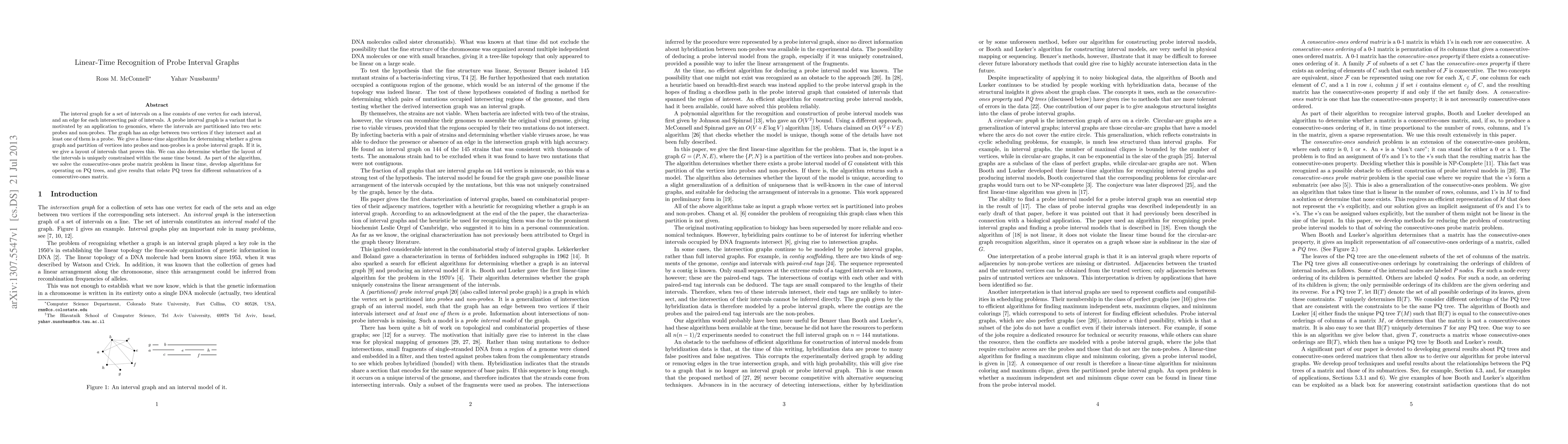 This paper presents a linear-time algorithm to recognize probe interval graphs, a variant of interval graphs with partitioned intervals for genomic applications. It also determines if the interval layout is uniquely constrained and solves the consecutive-ones probe matrix problem within the same time complexity.