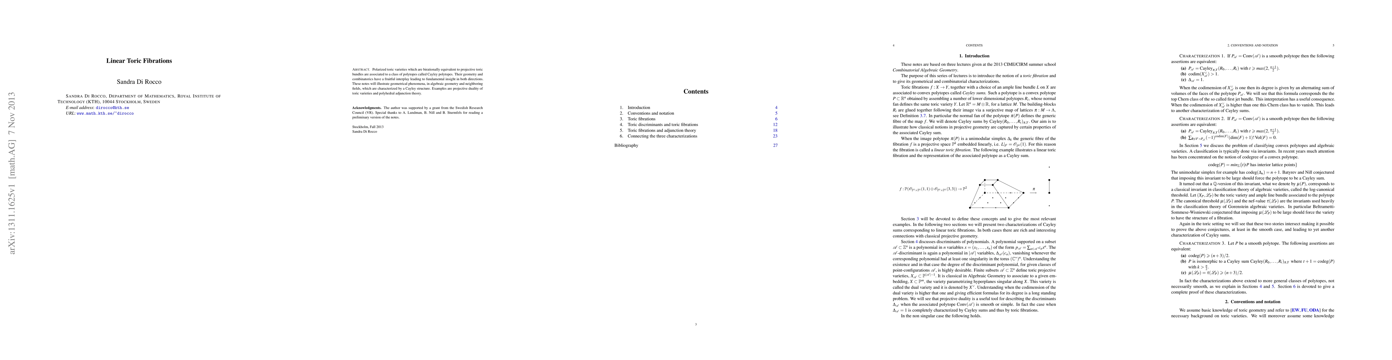 These notes are based on three lectures given at the 2013 CIME/CIRM summer school. The purpose of this series of lectures is to introduce the notion of a toric fibration and to give its geometrical and combinatorial characterizations. Polarized toric varieties which are birationally equivalent to projective toric bundles are associated to a class of polytopes called Cayley polytopes. Their geometry and combinatorics have a fruitful interplay leading to fundamental insight in both directions. These notes will illustrate geometrical phenomena, in algebraic geometry and neighboring fields, which are characterized by a Cayley structure. Examples are projective duality of toric varieties and polyhedral adjunction theory.