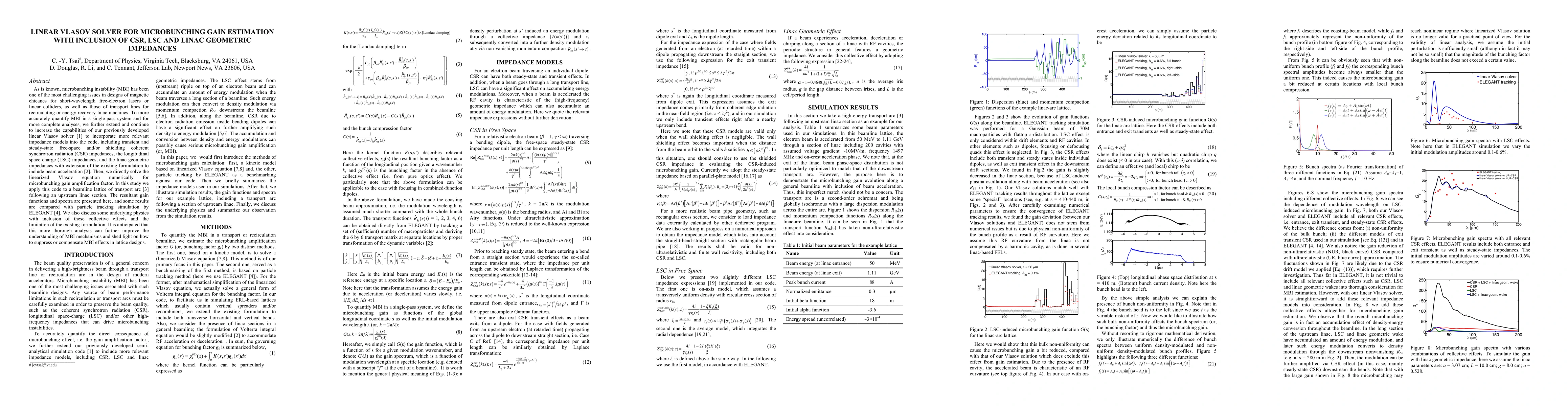 As is known, microbunching instability (MBI) has been one of the most challenging issues in designs of magnetic chicanes for short-wavelength free-electron lasers or linear colliders, as well as those of transport lines for recirculating or energy recovery linac machines. To more accurately quantify MBI in a single-pass system and for more complete analyses, we further extend and continue to increase the capabilities of our previously developed linear Vlasov solver [1] to incorporate more relevant impedance models into the code, including transient and steady-state free-space and/or shielding coherent synchrotron radiation (CSR) impedances, the longitudinal space charge (LSC) impedances, and the linac geometric impedances with extension of the existing formulation to include beam acceleration [2]. Then, we directly solve the linearized Vlasov equation numerically for microbunching gain amplification factor. In this study we apply this code to a beamline lattice of transport arc [3] following an upstream linac section. The resultant gain functions and spectra are presented here, and some results are compared with particle tracking simulation by ELEGANT [4]. We also discuss some underlying physics with inclusion of these collective effects and the limitation of the existing formulation. It is anticipated that this more thorough analysis can further improve the understanding of MBI mechanisms and shed light on how to suppress or compensate MBI effects in lattice designs.