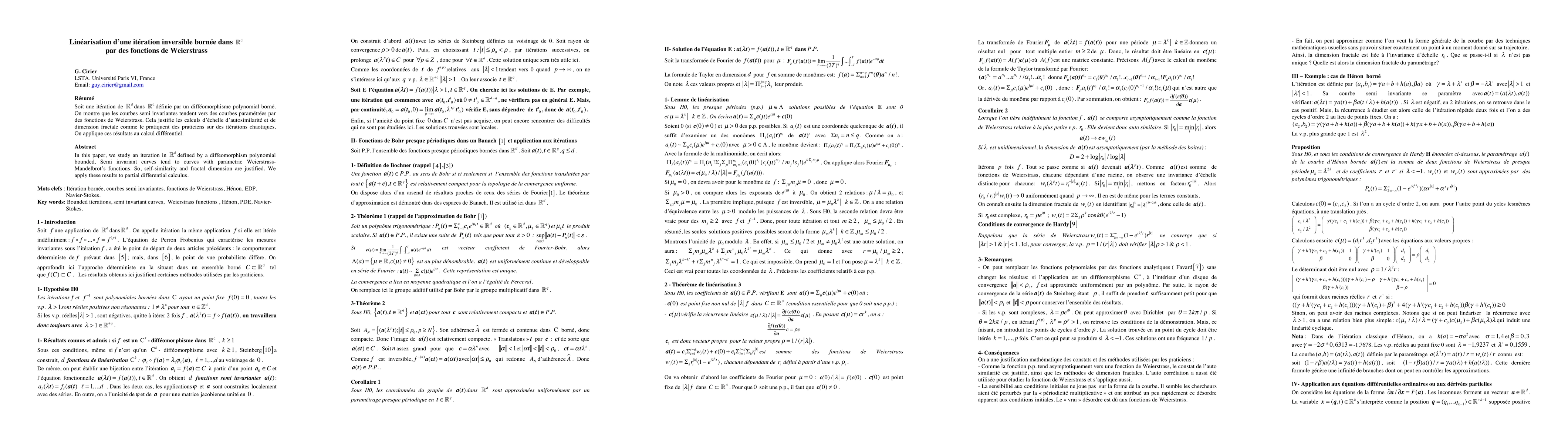 The research focuses on the linearization of a bounded iteration in R^d using Weierstrass-Mandelbrot functions, applying these results to partial differential calculus.