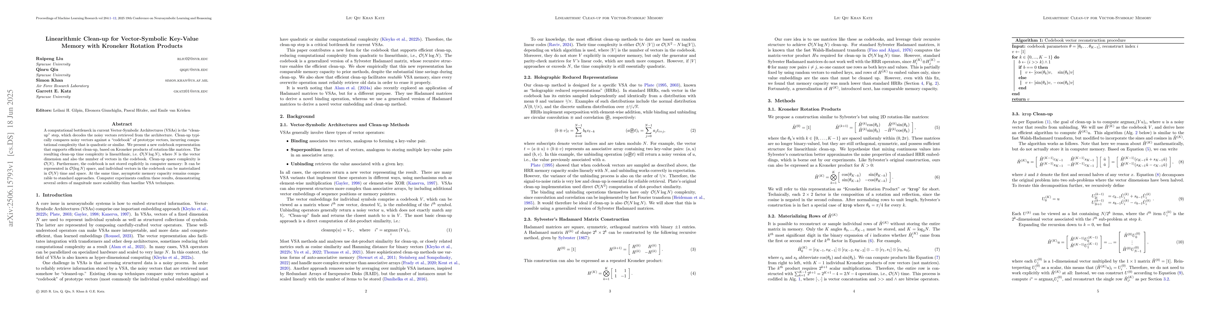 A computational bottleneck in current Vector-Symbolic Architectures (VSAs) is the ``clean-up'' step, which decodes the noisy vectors retrieved from the architecture. Clean-up typically compares noisy vectors against a ``codebook'' of prototype vectors, incurring computational complexity that is quadratic or similar. We present a new codebook representation that supports efficient clean-up, based on Kroneker products of rotation-like matrices. The resulting clean-up time complexity is linearithmic, i.e. $\mathcal{O}(N\,\text{log}\,N)$, where $N$ is the vector dimension and also the number of vectors in the codebook. Clean-up space complexity is $\mathcal{O}(N)$. Furthermore, the codebook is not stored explicitly in computer memory: It can be represented in $\mathcal{O}(\text{log}\,N)$ space, and individual vectors in the codebook can be materialized in $\mathcal{O}(N)$ time and space. At the same time, asymptotic memory capacity remains comparable to standard approaches. Computer experiments confirm these results, demonstrating several orders of magnitude more scalability than baseline VSA techniques.