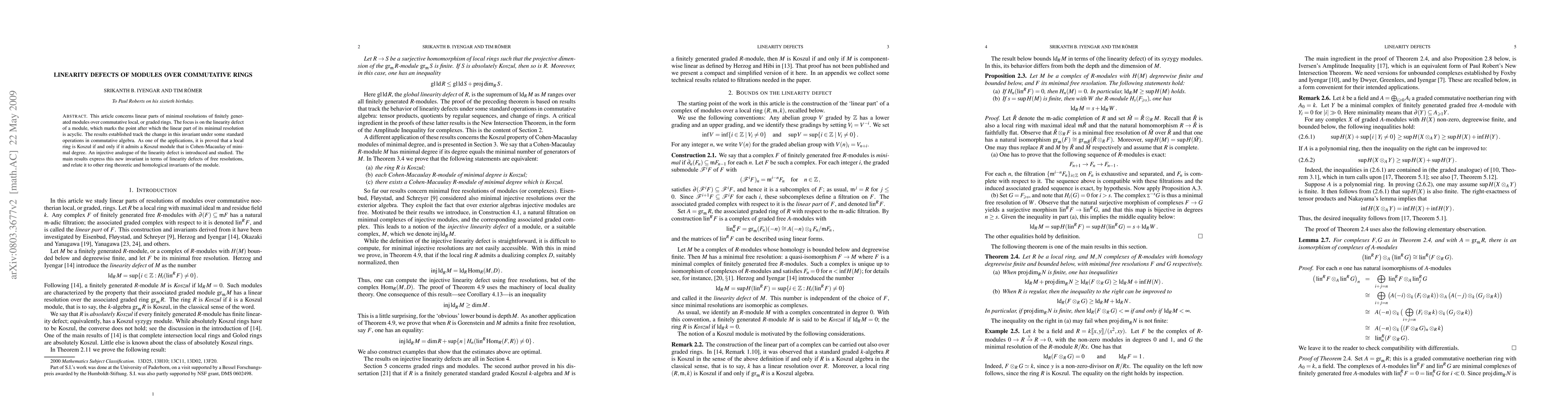 This paper explores the linearity defects in minimal resolutions of finitely generated modules over commutative local or graded rings, establishing how these defects change under standard operations. It introduces an injective analogue of the linearity defect and proves that a local ring is Koszul if it has a Koszul Cohen-Macaulay module of minimal degree.