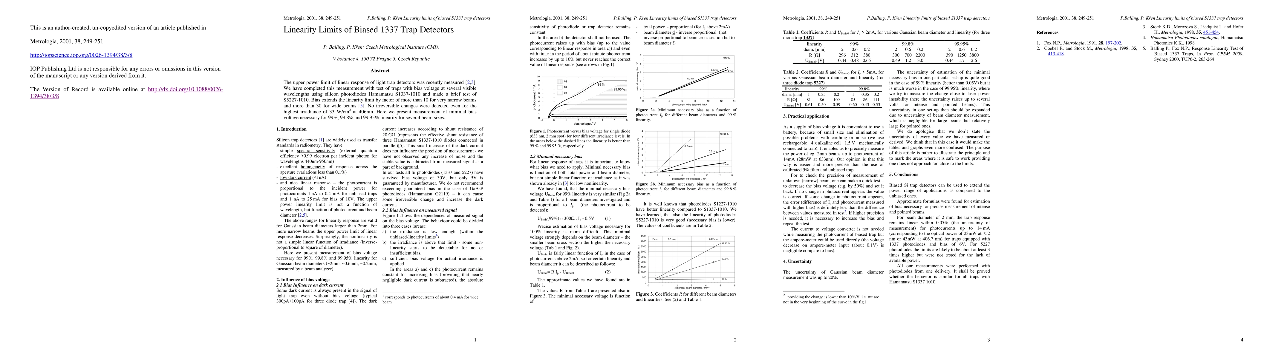 The research used biased silicon photodiodes Hamamatsu S1337-1010 and measured the minimal necessary bias voltage for 99%, 99.8% and 99.95% linearity for several beam sizes.