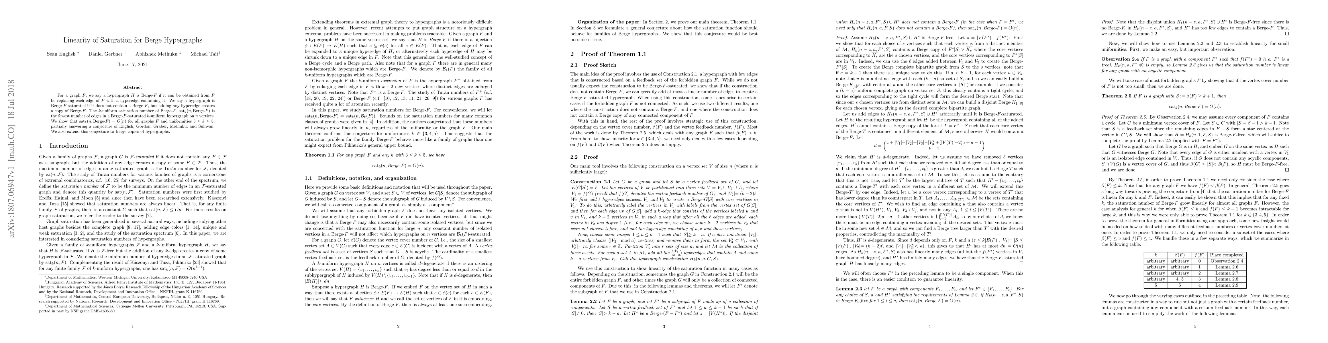 For a graph $F$, we say a hypergraph $H$ is Berge-$F$ if it can be obtained from $F$ be replacing each edge of $F$ with a hyperedge containing it. We say a hypergraph is Berge-$F$-saturated if it does not contain a Berge-$F$, but adding any hyperedge creates a copy of Berge-$F$. The $k$-uniform saturation number of Berge-$F$, $\mathrm{sat}_k(n,\text{Berge-}F)$ is the fewest number of edges in a Berge-$F$-saturated $k$-uniform hypergraph on $n$ vertices. We show that $\mathrm{sat}_k(n,\text{Berge-}F) = O(n)$ for all graphs $F$ and uniformities $3\leq k\leq 5$, partially answering a conjecture of English, Gordon, Graber, Methuku, and Sullivan. We also extend this conjecture to Berge copies of hypergraphs.