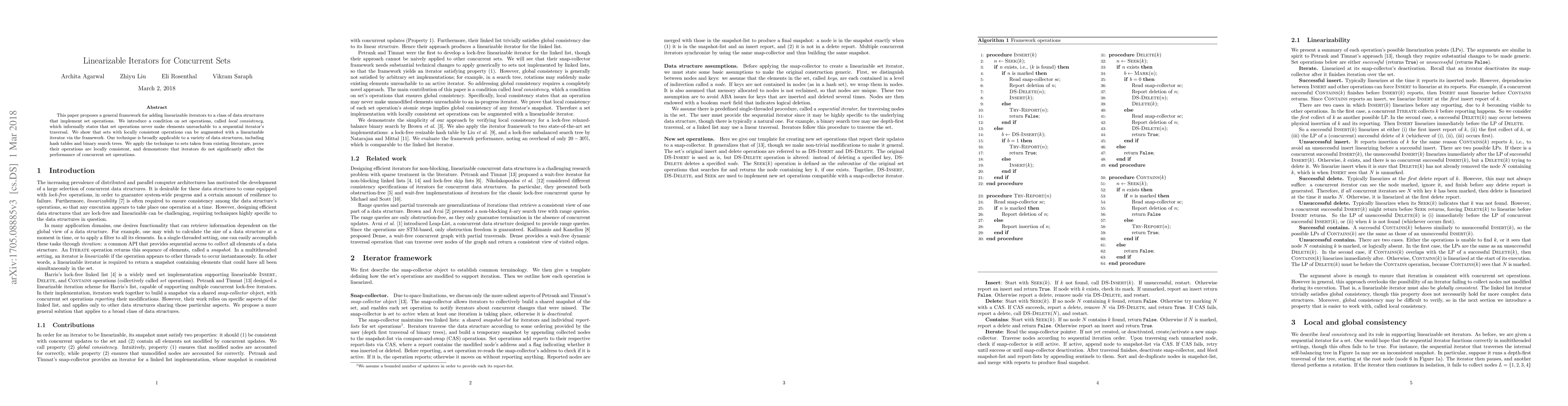 This paper presents a framework for adding linearizable iterators to concurrent set data structures, ensuring local consistency so that set operations do not make elements unreachable. The technique is shown to be broadly applicable to various structures like hash tables and binary search trees without significantly impacting performance.