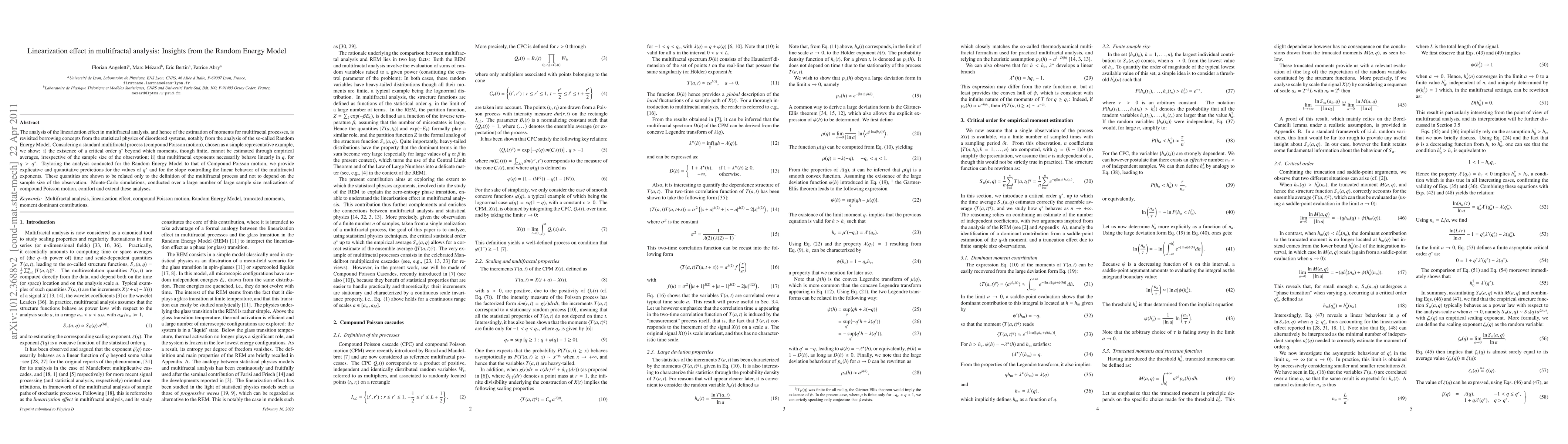 This paper explores the linearization effect in multifractal analysis using insights from the Random Energy Model, demonstrating that beyond a critical order $q^*$, moments cannot be estimated via empirical averages regardless of sample size. It also shows that multifractal exponents linearly behave for $q > q^*$, providing quantitative predictions for $q^*$ and the slope, independent of sample size, validated by Monte-Carlo simulations.