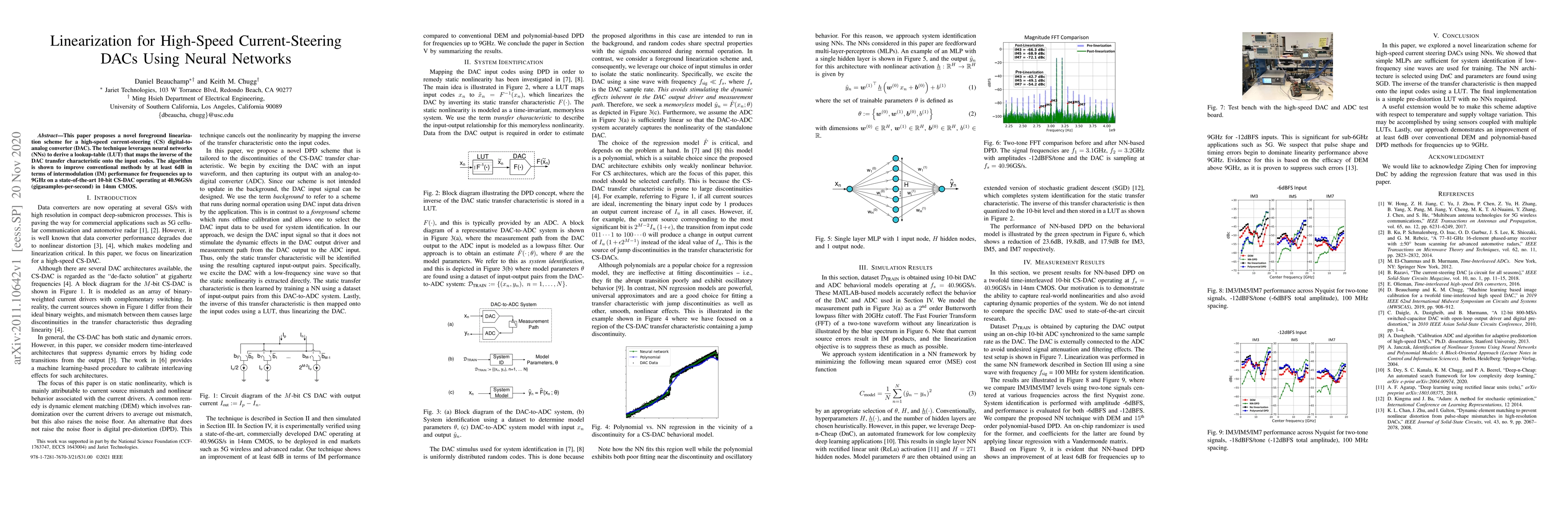 This paper proposes a novel foreground linearization scheme for a high-speed CS-DAC. The technique leverages neural networks (NNs) to derive a LUT that maps the inverse of the DAC transfer characteristic onto the input codes. The algorithm is shown to improve conventional methods by at least 6dB in terms of intermodulation (IM) performance for frequencies up to 9GHz on a state-of-the-art 10-bit CS-DAC operating at 40.96GS/s (gigasamples-per-second) in 14nm CMOS.