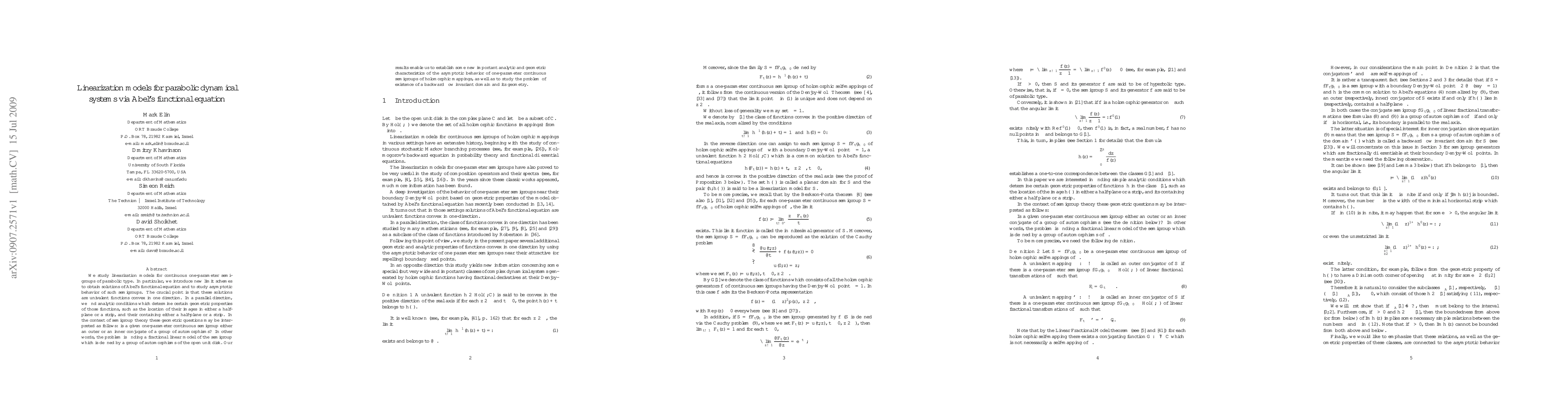 We study linearization models for continuous one-parameter semigroups of parabolic type. In particular, we introduce new limit schemes to obtain solutions of Abel's functional equation and to study asymptotic behavior of such semigroups. The crucial point is that these solutions are univalent functions convex in one direction. In a parallel direction, we find analytic conditions which determine certain geometric properties of those functions, such as the location of their images in either a half-plane or a strip, and their containing either a half-plane or a strip. In the context of semigroup theory these geometric questions may be interpreted as follows: is a given one-parameter continuous semigroup either an outer or an inner conjugate of a group of automorphisms? In other words, the problem is finding a fractional linear model of the semigroup which is defined by a group of automorphisms of the open unit disk. Our results enable us to establish some new important analytic and geometric characteristics of the asymptotic behavior of one-parameter continuous semigroups of holomorphic mappings, as well as to study the problem of existence of a backward flow invariant domain and its geometry.