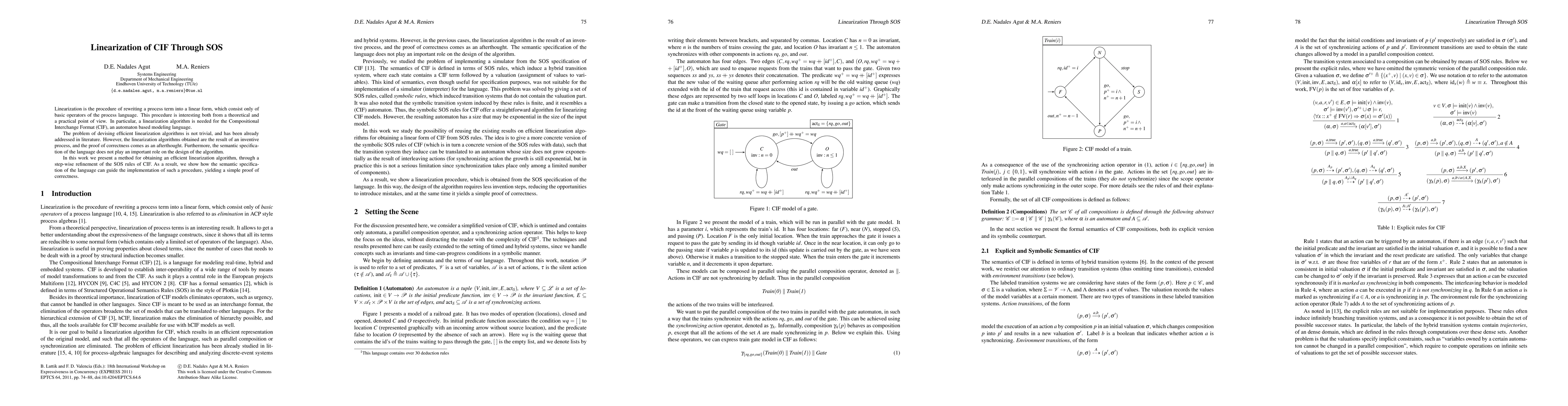 Linearization is the procedure of rewriting a process term into a linear form, which consist only of basic operators of the process language. This procedure is interesting both from a theoretical and a practical point of view. In particular, a linearization algorithm is needed for the Compositional Interchange Format (CIF), an automaton based modeling language. The problem of devising efficient linearization algorithms is not trivial, and has been already addressed in literature. However, the linearization algorithms obtained are the result of an inventive process, and the proof of correctness comes as an afterthought. Furthermore, the semantic specification of the language does not play an important role on the design of the algorithm. In this work we present a method for obtaining an efficient linearization algorithm, through a step-wise refinement of the SOS rules of CIF. As a result, we show how the semantic specification of the language can guide the implementation of such a procedure, yielding a simple proof of correctness.