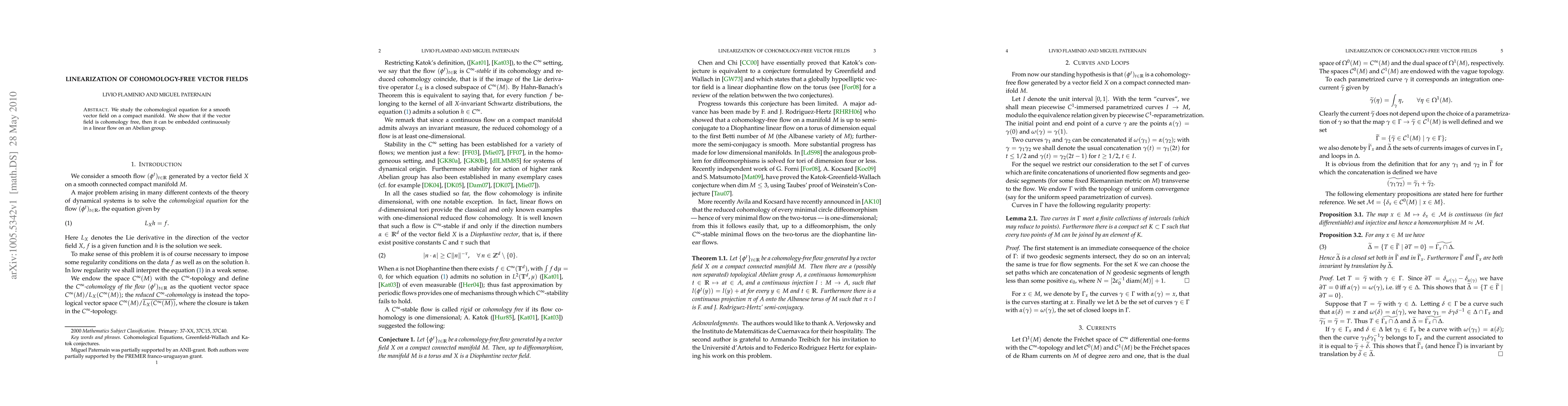 We study the cohomological equation for a smooth vector field on a compact manifold. We show that if the vector field is cohomology free, then it can be embedded continuously in a linear flow on an Abelian group.