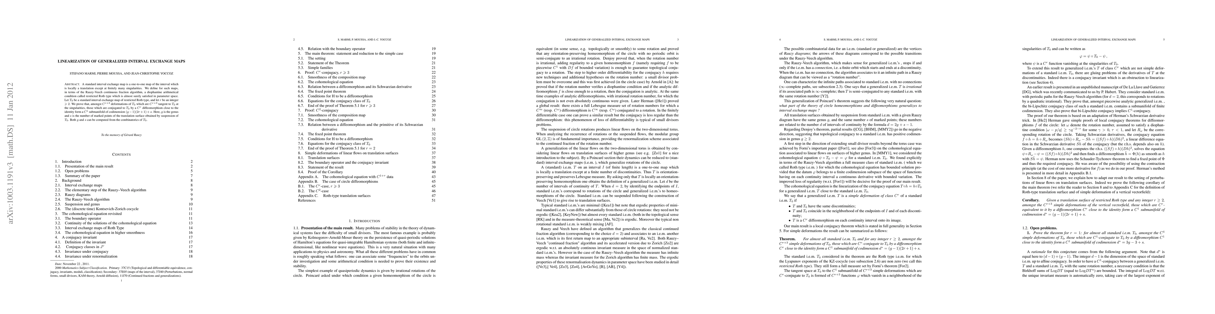 This paper linearizes generalized interval exchange maps by introducing a restricted Roth type condition. It demonstrates that among $C^{r+3}$ deformations of such maps, those conjugated to a given map by a $C^r$ diffeomorphism form a $C^1$ submanifold, with the codimension determined by the map's genus and marked points.