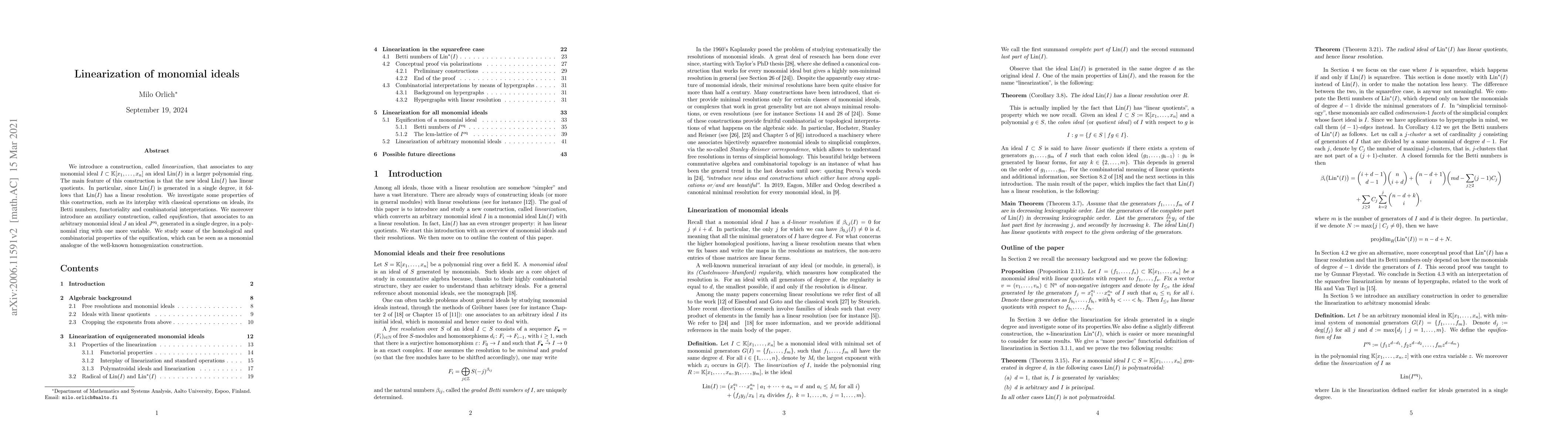 This paper introduces the linearization construction that associates a linear quotient ideal, Lin(I), to any monomial ideal I, revealing a linear resolution. The authors explore its properties, including interactions with classical operations, Betti numbers, and combinatorial interpretations. Additionally, they propose equification, a method creating a single-degree monomial ideal with properties analogous to homogenization.