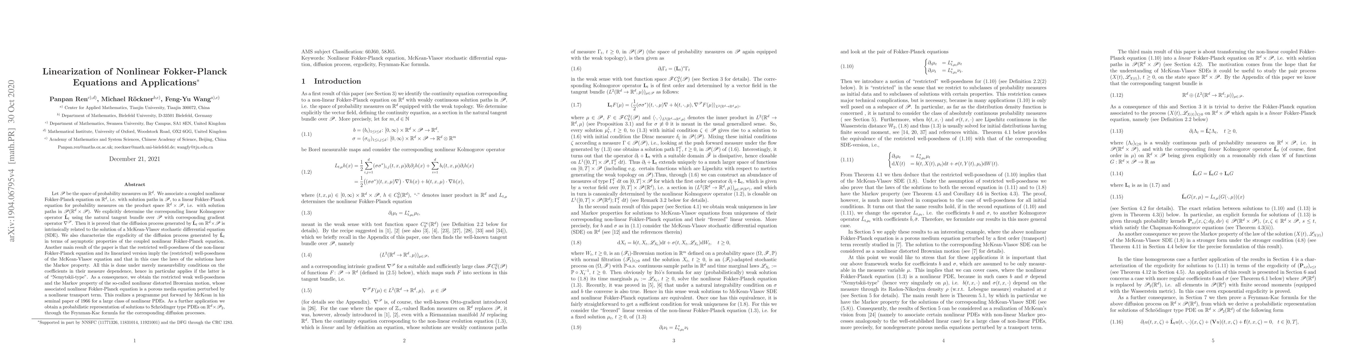 We associate a coupled nonlinear Fokker-Planck equation on $\R^d$, i.e. with solution paths in $\scr P$, to a linear Fokker-Planck equation for probability measures on the product space $\R^d\times \scr P$, i.e. with solution paths in $\scr P(\R^d\times\scr P)$. We explicitly determine the corresponding linear Kolmogorov operator $\tilde{\mathbf{L}}_t$ using the natural tangent bundle over $\scr P$ with corresponding gradient operator $\nabla^\scr P$. Then it is proved that the diffusion process generated by $\tilde{\mathbf{L}}_t$ on $\R^d\times\scr P$ is intrinsically related to the solution of a McKean-Vlasov stochastic differential equation (SDE). We also characterize the ergodicity of the diffusion process generated by $\tilde{\mathbf{L}}_t$ in terms of asymptotic properties of the coupled nonlinear Fokker-Planck equation. Another main result of the paper is that the restricted well-posedness of the non-linear Fokker-Planck equation and its linearized version imply the (restricted) well-posedness of the McKean-Vlasov equation and that in this case the laws of the solutions have the Markov property. All this is done under merely measurebility conditions on the coefficients in their measure dependence, hence in particular applies if the latter is of "Nemytskii-type". As a consequence, we obtain the restricted weak well-posedness and the Markov property of the so-called nonlinear distorted Brownian motion, whose associated nonlinear Fokker-Planck equation is a porous media equation perturbed by a nonlinear transport term. This realizes a programme put forward by McKean in his seminal paper of 1966 for a large class of nonlinear PDEs. As a further application we obtain a probabilistic representation of solutions to Schr\"odinger type PDEs on $\R^d\times\scr P_2$, through the Feynman-Kac formula for the corresponding diffusion processes.