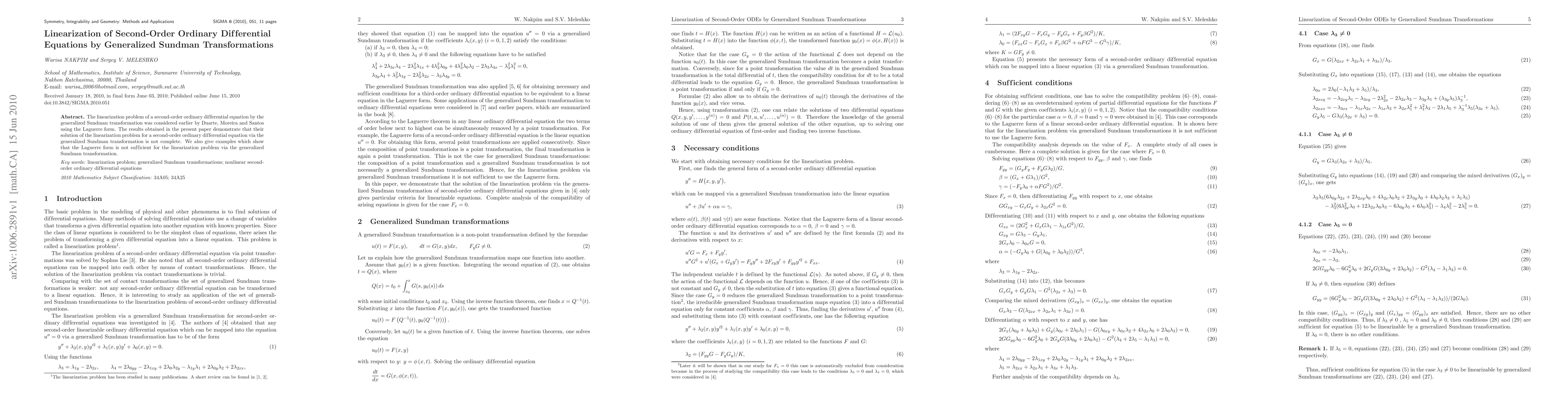 This paper critiques a previous solution by Duarte, Moreira, and Santos on linearizing second-order ODEs using generalized Sundman transformations, showing their method is incomplete and that the Laguerre form alone is insufficient for complete linearization.