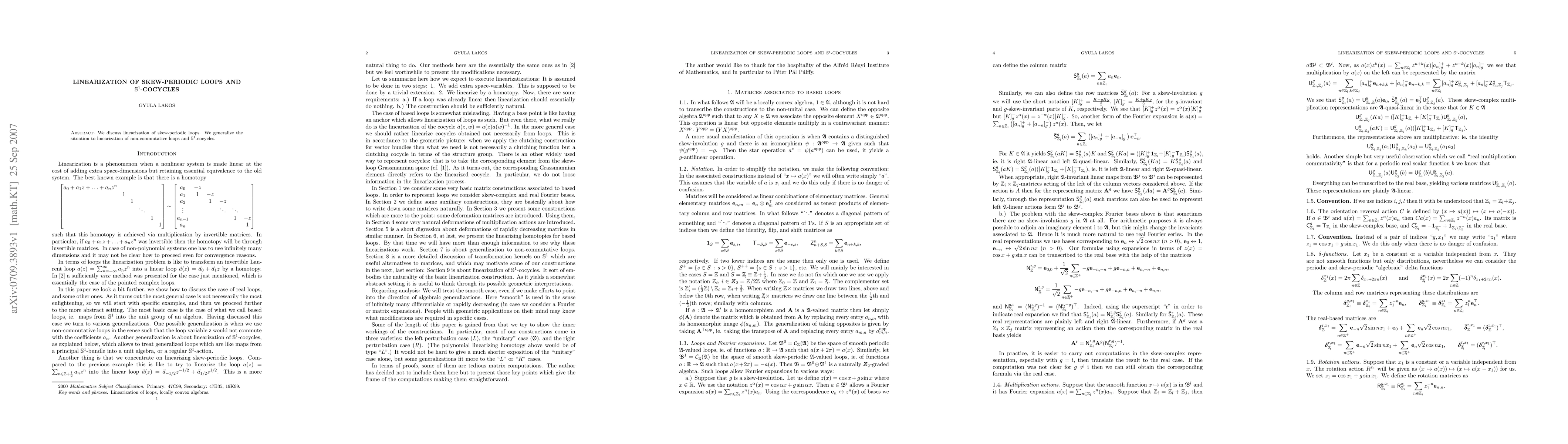 This paper discusses linearization of skew-periodic loops and $oldsymbol{ ext{S}^1}$-cocycles, generalizing the concept to non-commutative loops and cocycles, with key implications for understanding periodic behavior in mathematics and physics.