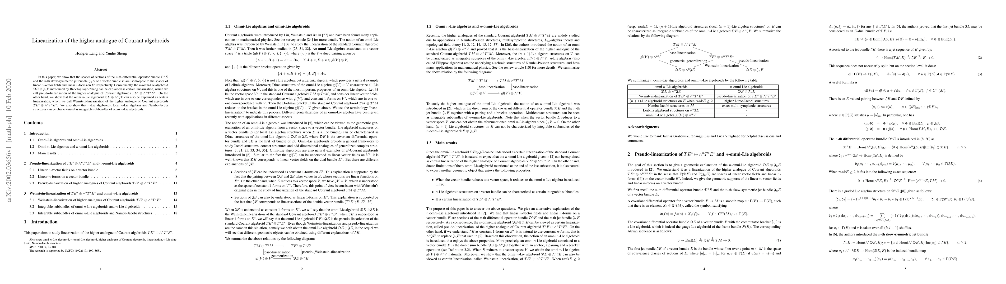 In this paper, we show that the spaces of sections of the $n$-th differential operator bundle $\dev^n E$ and the $n$-th skew-symmetric jet bundle $\jet_n E$ of a vector bundle $E$ are isomorphic to the spaces of linear $n$-vector fields and linear $n$-forms on $E^*$ respectively. Consequently, the $n$-omni-Lie algebroid $\dev E\oplus\jet_n E$ introduced by Bi-Vitagliago-Zhang can be explained as certain linearization, which we call pseudo-linearization of the higher analogue of Courant algebroids $TE^*\oplus \wedge^nT^*E^*$. On the other hand, we show that the omni $n$-Lie algebroid $\dev E\oplus \wedge^n\jet E$ can also be explained as certain linearization, which we call Weinstein-linearization of the higher analogue of Courant algebroids $TE^*\oplus \wedge^nT^*E^*$. We also show that $n$-Lie algebroids, local $n$-Lie algebras and Nambu-Jacobi structures can be characterized as integrable subbundles of omni $n$-Lie algebroids.