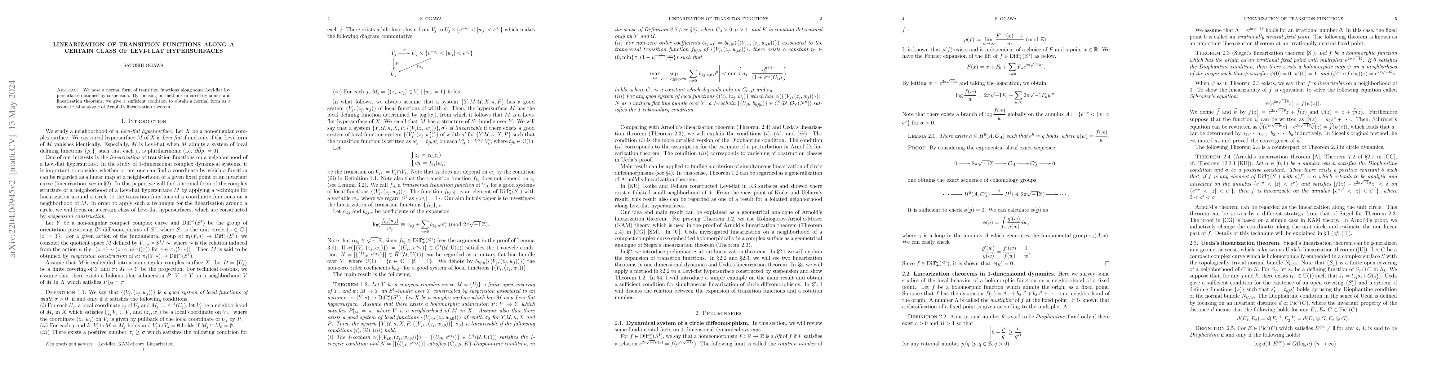 Summary: This paper establishes a normal form for transition functions along certain Levi-flat hypersurfaces, employing techniques from circle dynamics and linearization theorems, and provides a geometrical analogue to Arnol'd's linearization theorem under specified conditions.