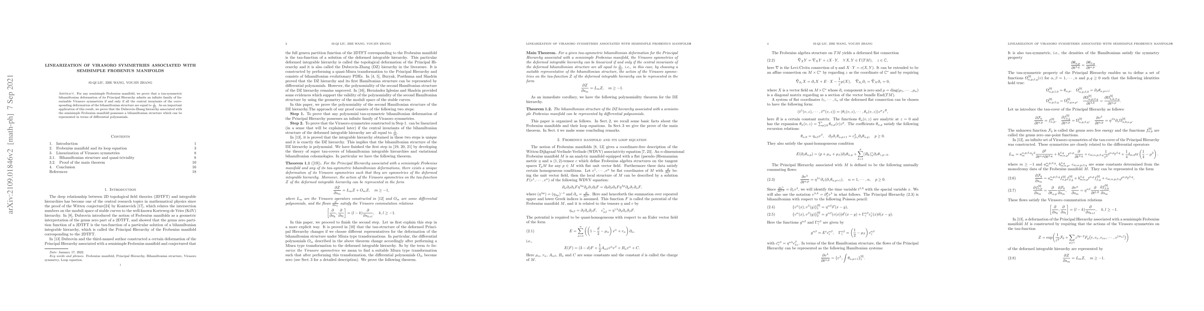 This paper proves that a tau-symmetric bihamiltonian deformation of a semisimple Frobenius manifold's Principal Hierarchy can be linearized with Virasoro symmetries if all central invariants equal $\frac{1}{24}$. An application demonstrates the Dubrovin-Zhang hierarchy's bihamiltonian structure via differential polynomials.