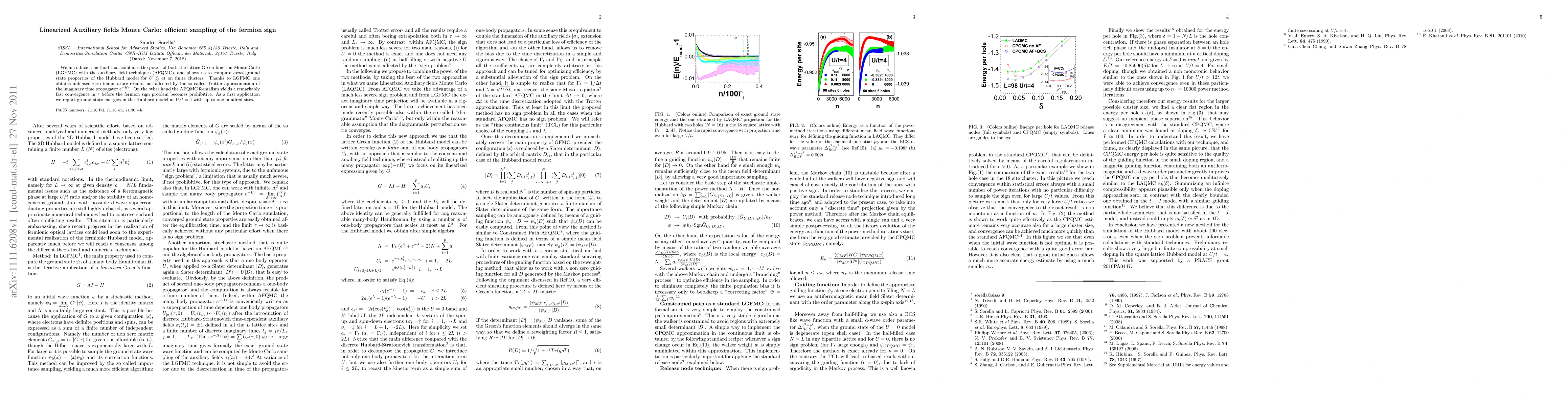 We introduce a method that combines the power of both the lattice Green function Monte Carlo (LGFMC) with the auxiliary field techniques (AFQMC), and allows us to compute exact ground state properties of the Hubbard model for U<~ 4t on finite clusters. Thanks to LGFMC one obtains unbiased zero temperature results, not affected by the so called Trotter approximation of the imaginary time propagator exp(- H t). On the other hand the AFQMC formalism yields a remarkably fast convergence in t before the fermion sign problem becomes prohibitive. As a first application we report ground state energies in the Hubbard model at U/t=4 with up to one hundred sites.