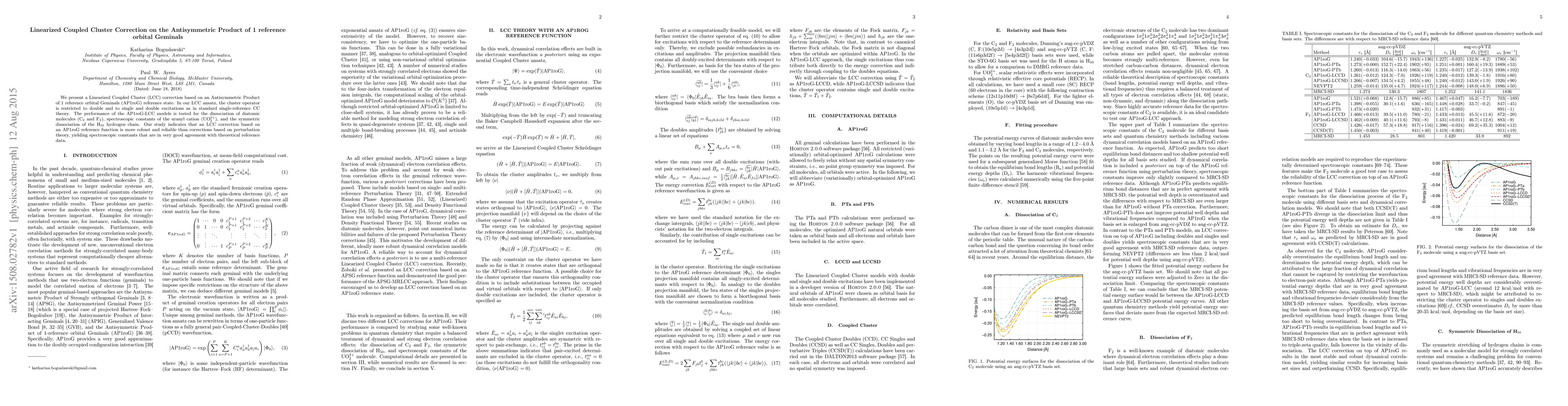 We present a Linearized Coupled Cluster (LCC) correction based on an Antisymmetric Product of 1 reference orbital Geminals (AP1roG) reference state. In our LCC ansatz, the cluster operator is restricted to double and to single and double excitations as in standard single-reference CC theory. The performance of the AP1roG-LCC models is tested for the dissociation of diatomic molecules (C$_2$ and F$_2$), spectroscopic constants of the uranyl cation (UO$_2^{2+}$), and the symmetric dissociation of the H$_{50}$ hydrogen chain. Our study indicates that an LCC correction based on an AP1roG reference function is more robust and reliable than corrections based on perturbation theory, yielding spectroscopic constants that are in very good agreement with theoretical reference data.