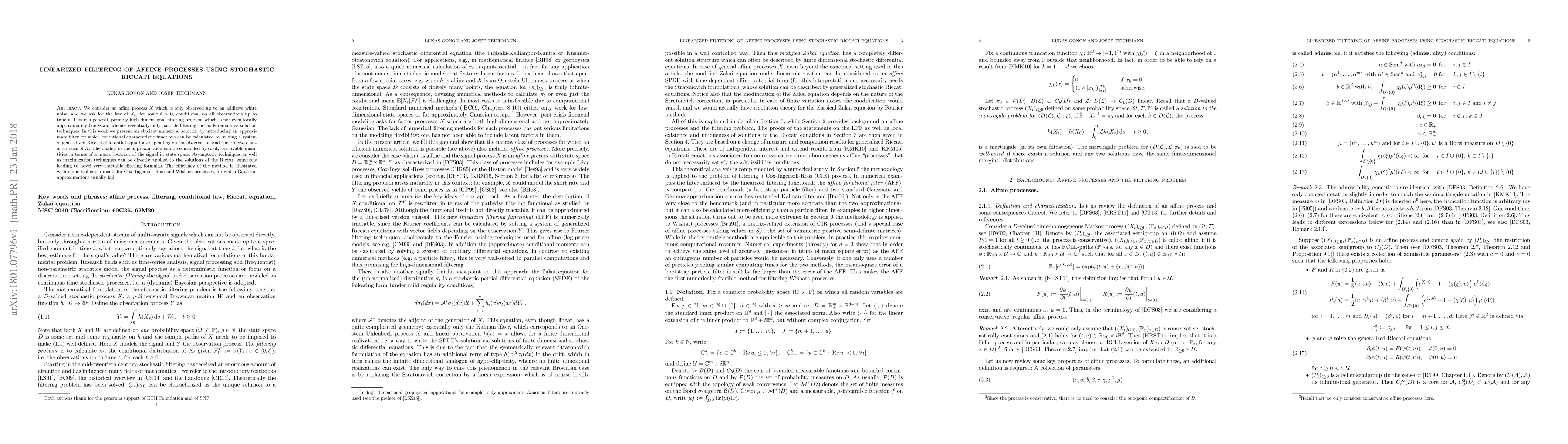 This paper proposes an efficient numerical filtering method for affine processes observed with additive white noise, using a linearized filter based on solving generalized Riccati differential equations. The method provides tractable filtering formulas and is demonstrated to be effective for Cox-Ingersoll-Ross and Wishart processes where Gaussian approximations fail.