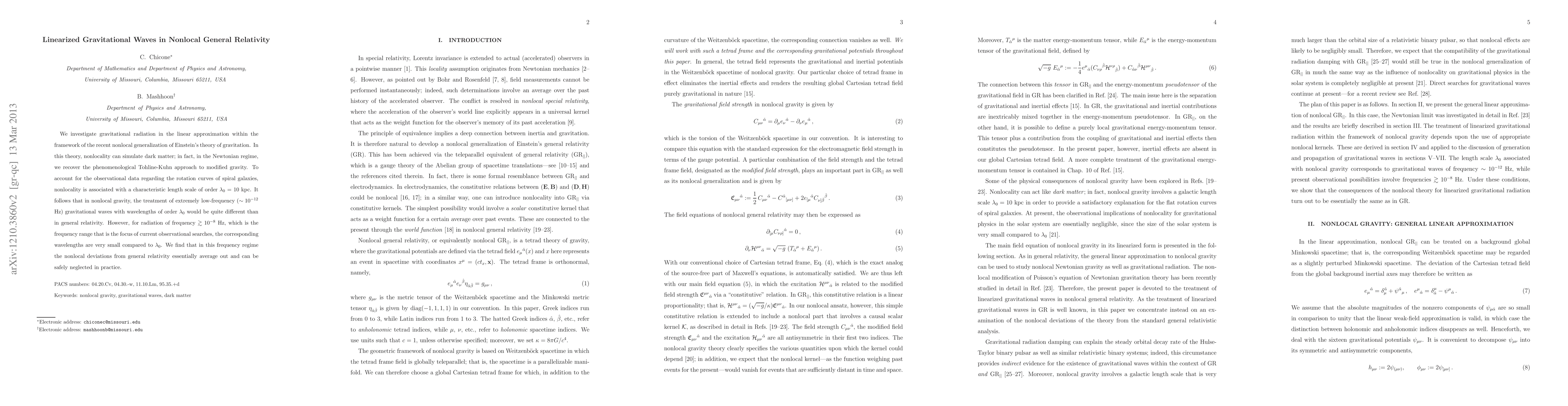 This work introduces a novel approach to understanding gravitational waves by incorporating nonlocality into General Relativity, offering a potential explanation for dark matter through its effect on gravitational radiation.