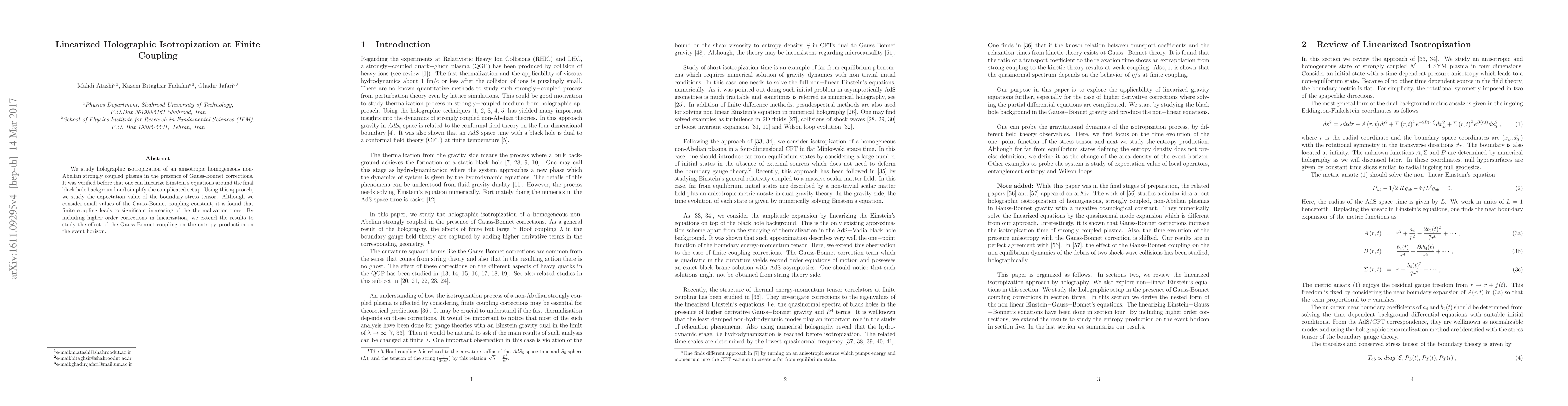 This paper investigates the linearized holographic isotropization of a strongly coupled anisotropic plasma, focusing on the impact of Gauss-Bonnet corrections. It finds that even small Gauss-Bonnet couplings significantly increase thermalization time and extends the analysis to study entropy production on the event horizon.