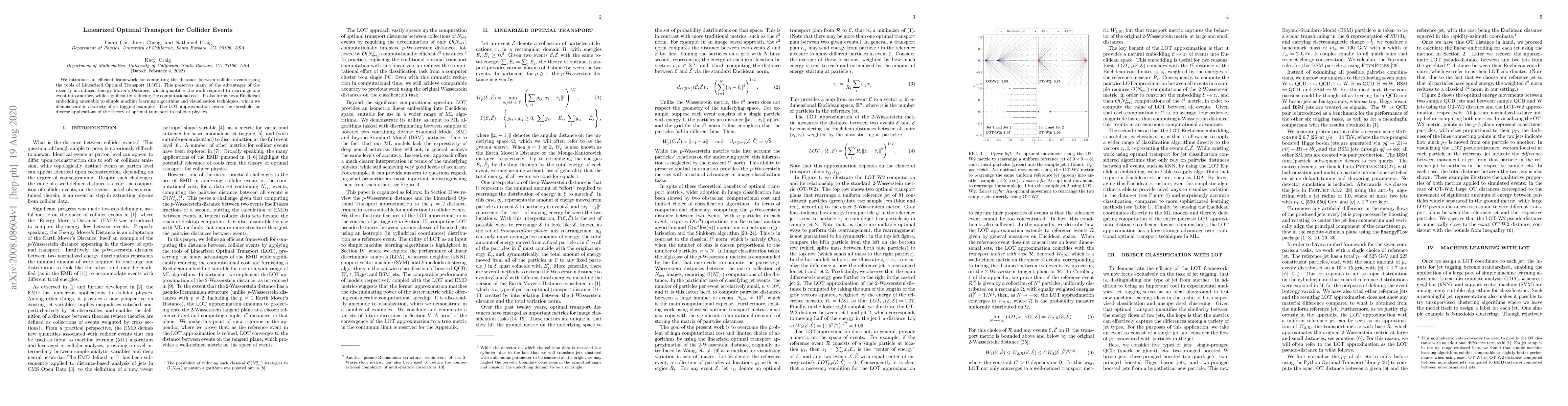 A new framework uses Linearized Optimal Transport to efficiently compute distance between collider events, preserving benefits of Energy Mover's Distance while reducing computational cost.