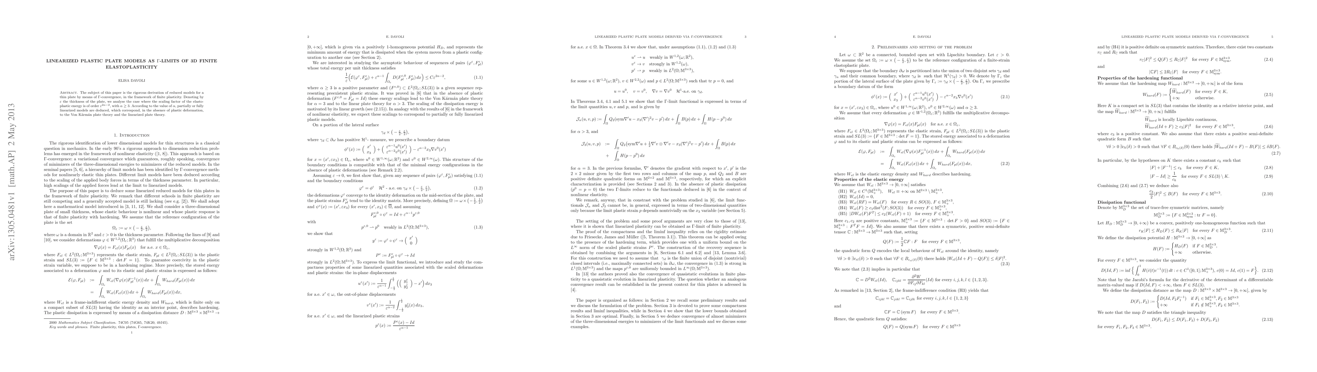 The subject of this paper is the rigorous derivation of reduced models for a thin plate by means of {\Gamma}-convergence, in the framework of finite plasticity. Denoting by {\epsilon} the thickness of the plate, we analyse the case where the scaling factor of the elasto-plastic energy is of order {\epsilon}^(2{\alpha}-2), with {\alpha}>=3. According to the value of {\alpha}, partially or fully linearized models are deduced, which correspond, in the absence of plastic deformation, to the Von Karman plate theory and the linearized plate theory.