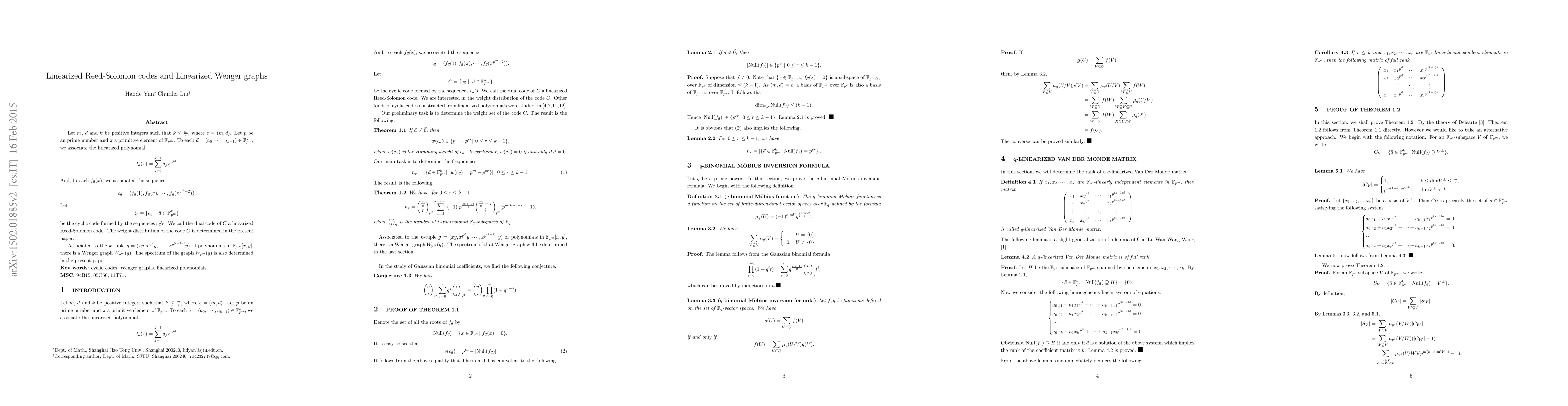 A codeword is associated to a linearized polynomial. The weight distribution of the codewords is determined as the linearized polynomial varies in a family of fixed degree. There is a corresponding result on Wenger graphs from linearized polynomials.