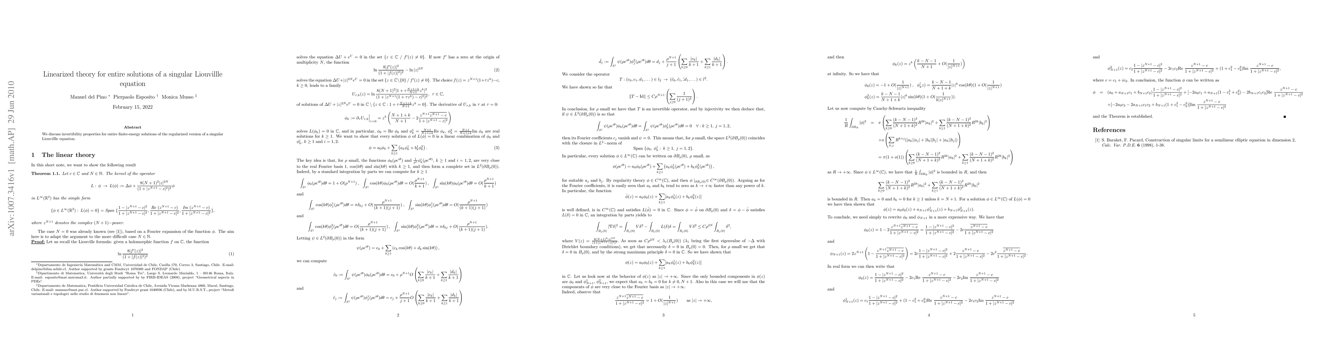 Summary: This paper investigates the invertibility properties of entire finite-energy solutions for the regularized version of a singular Liouvillle equation, focusing on the theoretical framework for such solutions.
