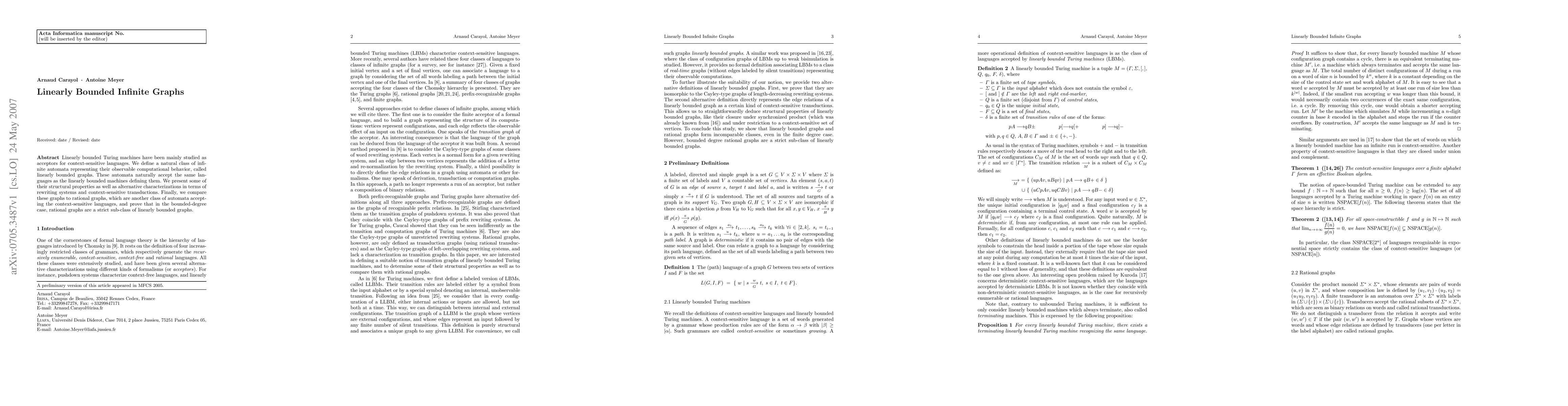 This paper introduces linearly bounded graphs, infinite automata representing the observable behavior of linearly bounded Turing machines, and shows they accept the same context-sensitive languages. It also compares these graphs to rational graphs, proving that rational graphs are a strict subclass in the bounded-degree case.