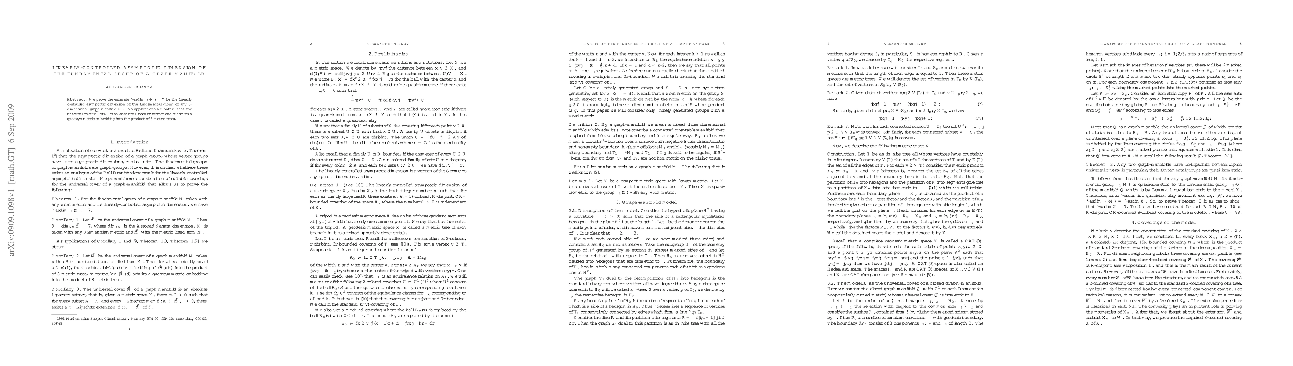 Researchers prove that 3D graph-manifolds have a fundamental group with asymptotic dimension not exceeding 7, allowing for certain geometric properties to be applied.