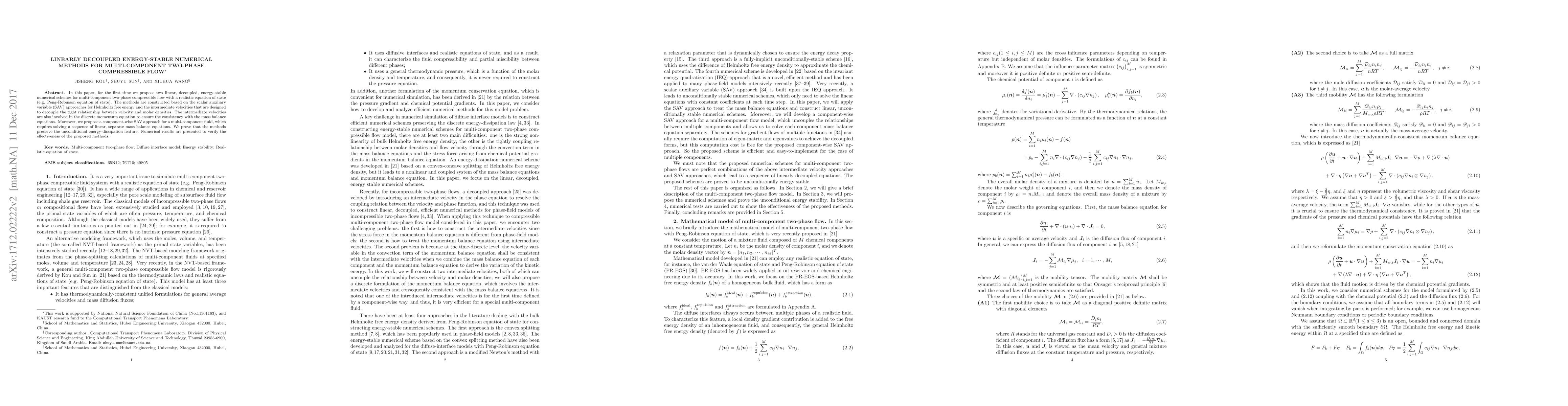 Researchers propose two new numerical methods for simulating complex fluid flows with multiple components, ensuring energy stability and accuracy. The methods decouple velocity and density relationships, improving the simulation of compressible fluids.