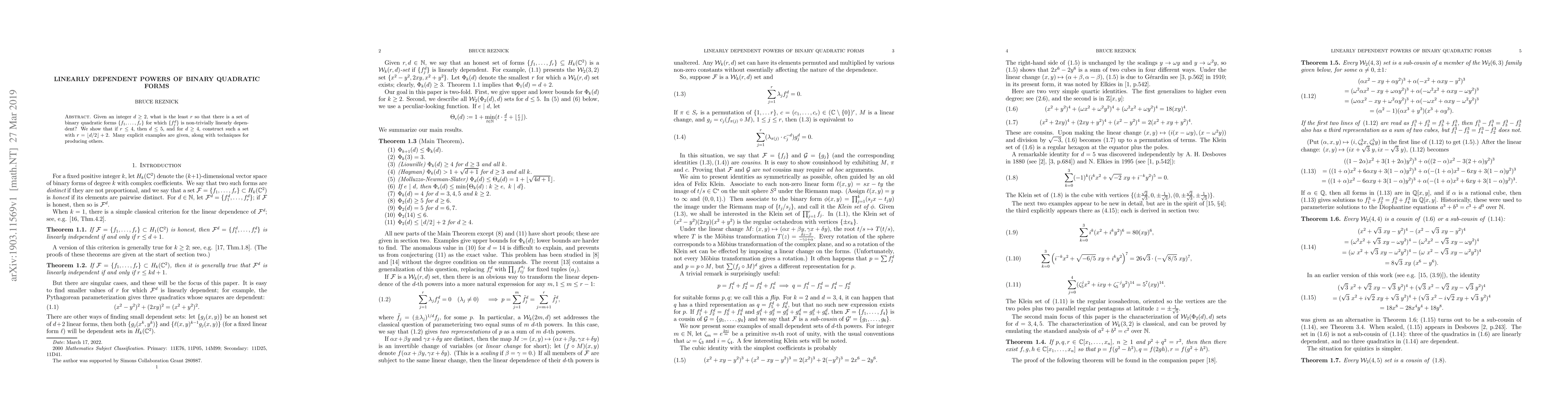 Given an integer $d \ge 2$, what is the least $r$ so that there is a set of binary quadratic forms $\{f_1,\dots,f_r\}$ for which $\{f_j^d\}$ is non-trivially linearly dependent? We show that if $r \le 4$, then $d \le 5$, and for $d \ge 4$, construct such a set with $r = \lfloor d/2\rfloor + 2$. Many explicit examples are given, along with techniques for producing others.