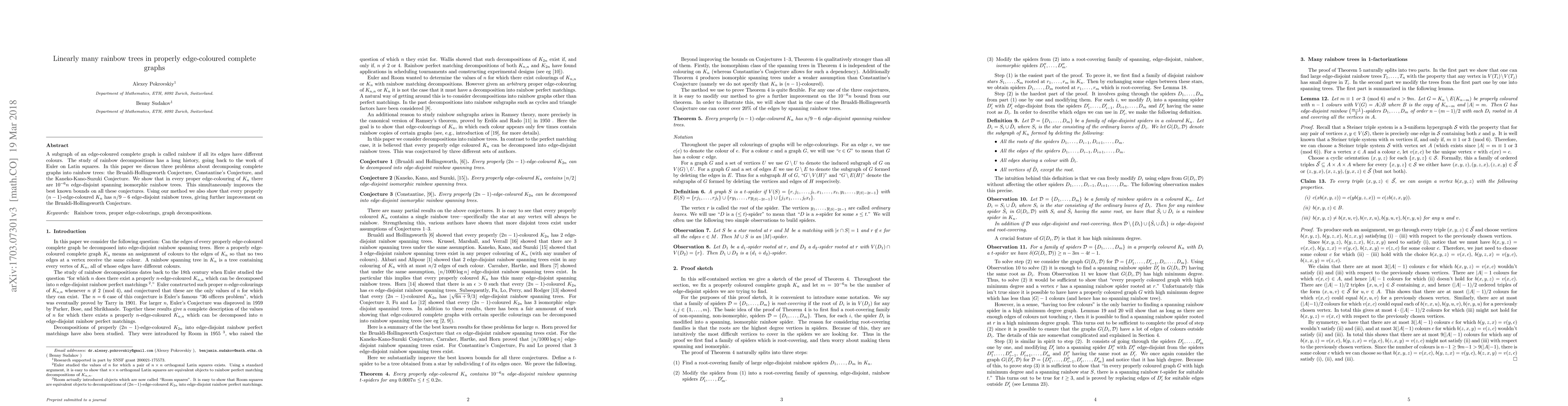 The paper proves that in any proper edge-colouring of the complete graph $K_n$, there exist $10^{-6}n$ edge-disjoint spanning isomorphic rainbow trees, improving previous bounds on the Brualdi-Hollingsworth, Constantine, and Kaneko-Kano-Suzuki Conjectures. It also shows that every properly $(n-1)$-edge-coloured $K_n$ contains $n/9$ edge-disjoint rainbow trees.