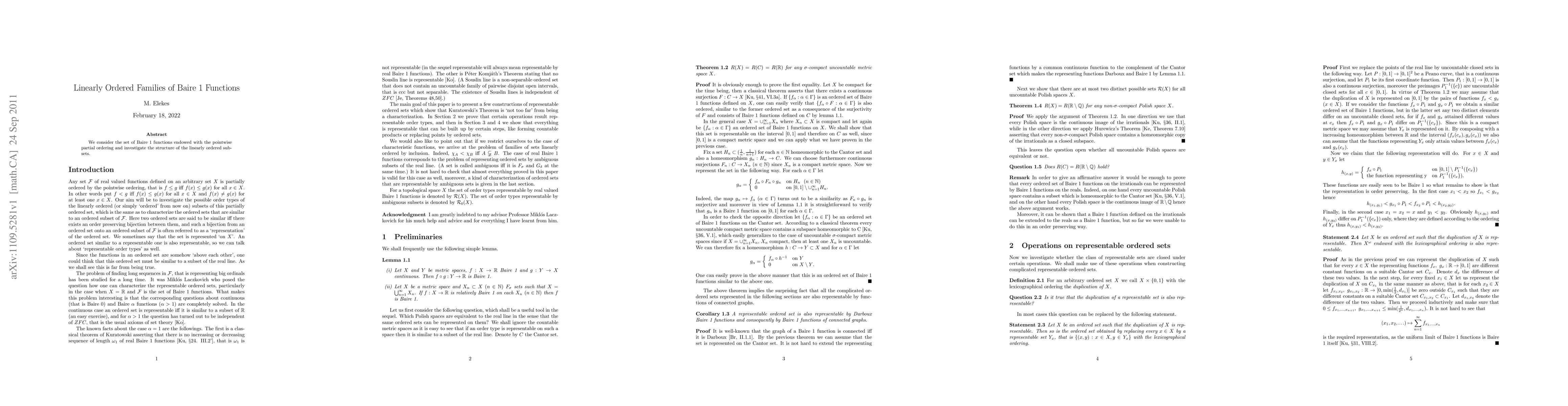 We consider the set of Baire 1 functions endowed with the pointwise partial ordering and investigate the structure of the linearly ordered subsets.