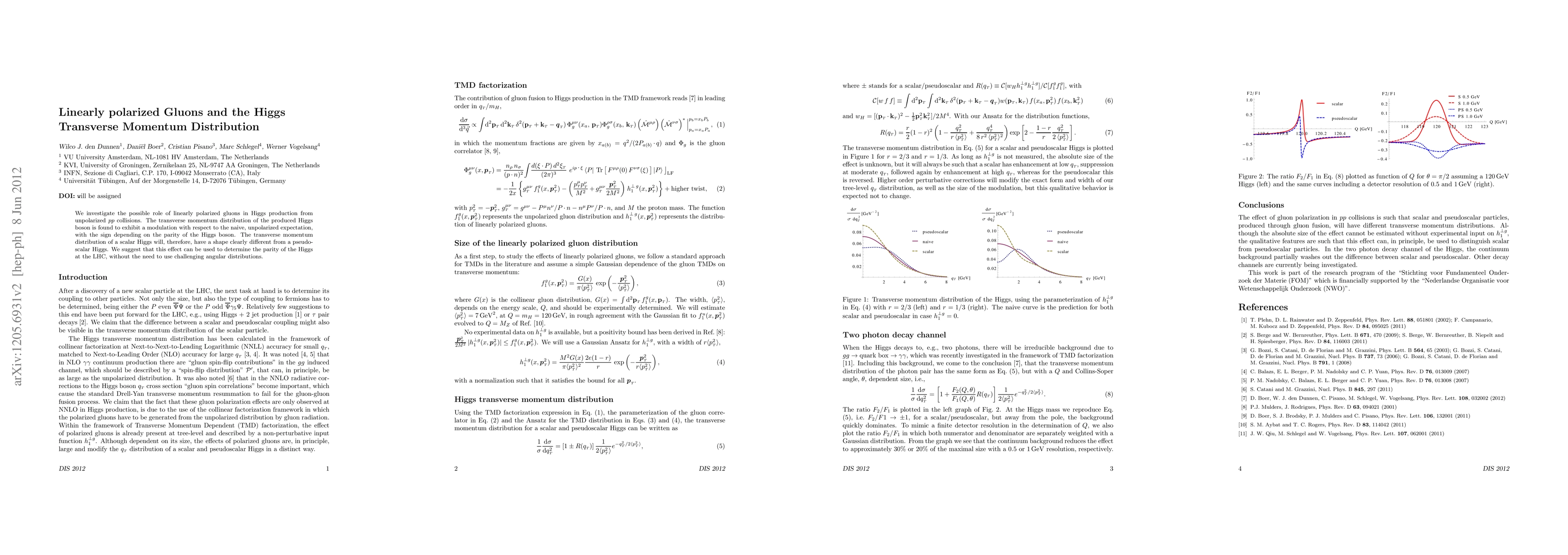 This paper explores how linearly polarized gluons in unpolarized proton-proton collisions affect the transverse momentum distribution of Higgs bosons, revealing a modulation in the distribution that depends on the Higgs' parity. The study suggests using this effect to determine the Higgs' parity at the LHC without relying on complex angular distributions.