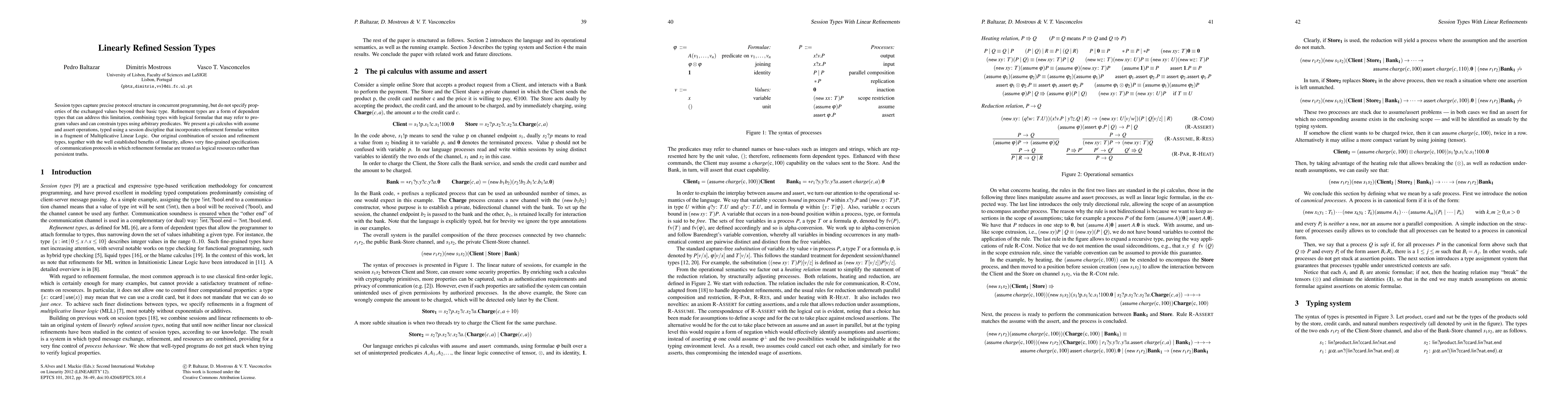This paper introduces a pi calculus with session types enhanced by refinement types, using a fragment of Multiplicative Linear Logic to specify communication protocols. This combination allows for fine-grained, resource-aware specifications of concurrent programming protocols.