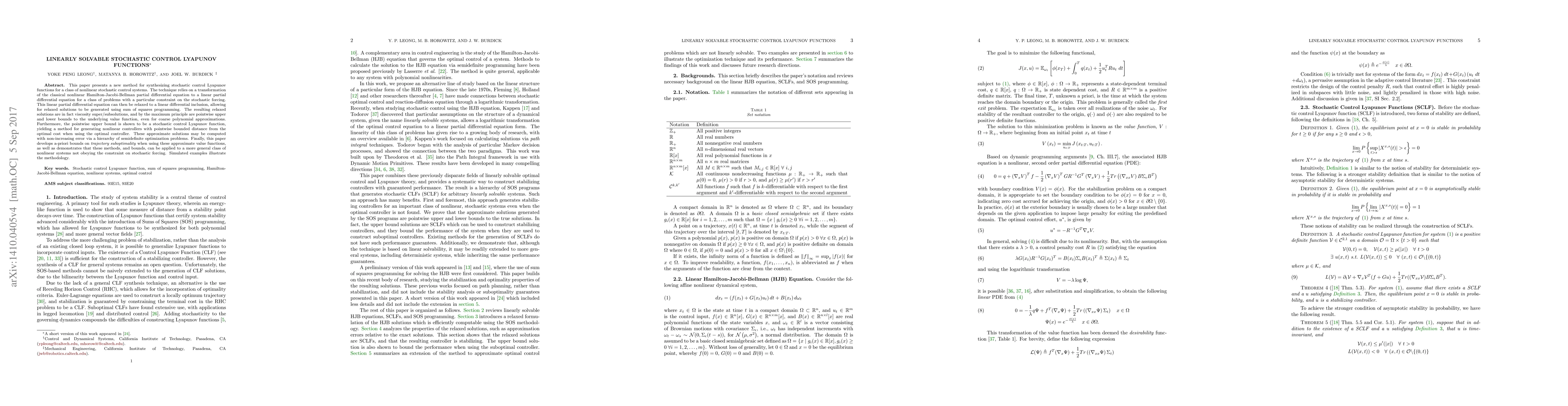 The paper presents a new method for synthesizing stochastic control Lyapunov functions for nonlinear stochastic control systems by transforming the classical nonlinear Hamilton-Jacobi-Bellman (HJB) PDE into a linear PDE, relaxing it to a linear differential inclusion, and solving it using sum-of-squares (SOS) programming.