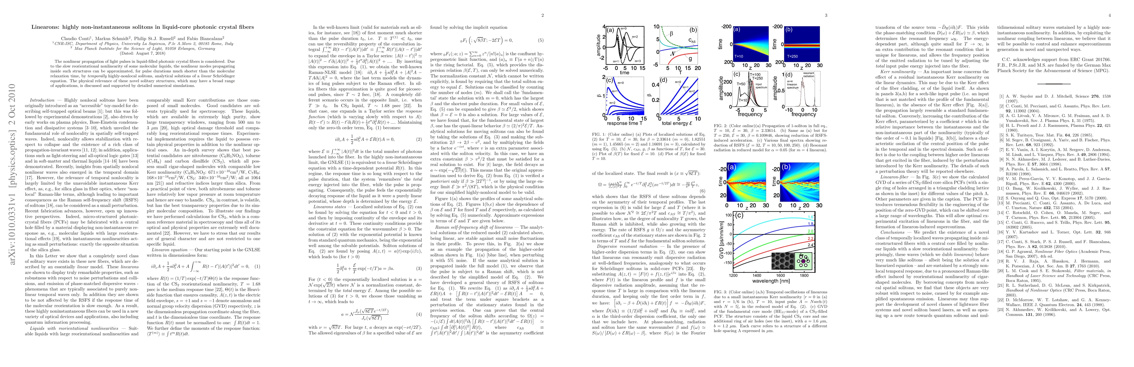 This paper investigates the propagation of light pulses in liquid-filled photonic crystal fibers, proposing that slow reorientational nonlinearity in certain molecular liquids leads to the formation of highly non-instantaneous solitons called linearons. These novel solitary wave structures are supported by analytical solutions and detailed numerical simulations, suggesting potential broad applications.