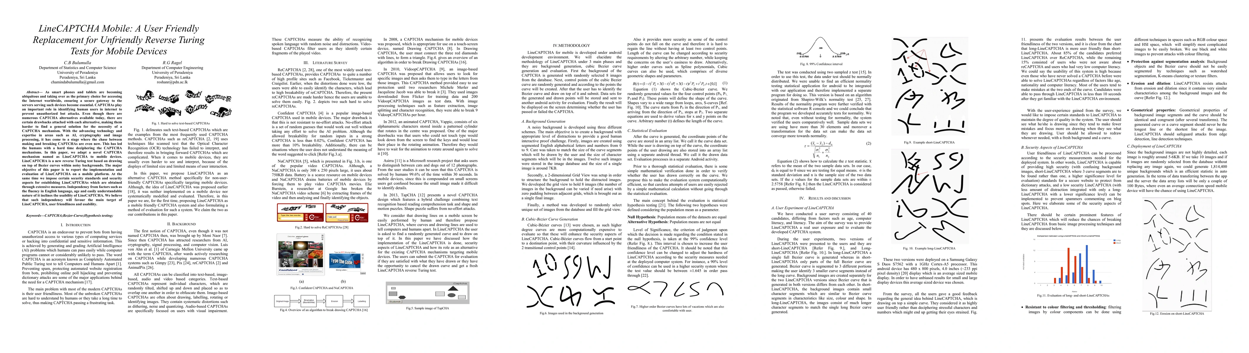 As smart phones and tablets are becoming ubiquitous and taking over as the primary choice for accessing the Internet worldwide, ensuring a secure gateway to the servers serving such devices become essential. CAPTCHAs play an important role in identifying human users in internet to prevent unauthorized bot attacks. Even though there are numerous CAPTCHA alternatives available today, there are certain drawbacks attached with each alternative, making them harder to find a general solution for the necessity of a CAPTCHA mechanism. With the advancing technology and expertise in areas such as AI, cryptography and image processing, it has come to a stage where the chase between making and breaking CAPTCHAs are even now. This has led the humans with a hard time deciphering the CAPTCHA mechanisms. In this paper, we adapt a novel CAPTCHA mechanism named as LineCAPTCHA to mobile devices. LineCAPTCHA is a new reverse Turing test based on drawing on top of Bezier curves within noisy backgrounds. The major objective of this paper is to report the implementation and evaluation of LineCAPTCHA on a mobile platform. At the same time we impose certain security standards and security aspects for establishing LineCAPTCHAs which are obtained through extensive measures. Independency from factors such as the fluency in English language, age and easily understandable nature of it inclines the usability of LineCAPTCHA. We believe that such independency will favour the main target of LineCAPTCHA, user friendliness and usability.